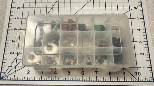 This lot of jewelry crafting beads includes a variety of glass, stone, and metal beads, all stored in a case. The beads are multicolored and can be used for creating unique jewelry pieces. With a vintage style, these beads are perfect for DIY jewelry projects or repairs. The mixed lot offers many pieces to work with, making it a versatile and creative addition to any jewelry-making collection.