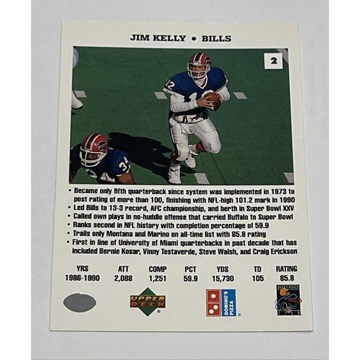- Jim Kelly* 1991 The Quarterbacks Challenge Dominoes Card #2 - NFL Bills Vintage*