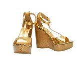 - Jimmy Choo Gold Leather T - strap Sandals Wedges Heel Platform Shoes size 41