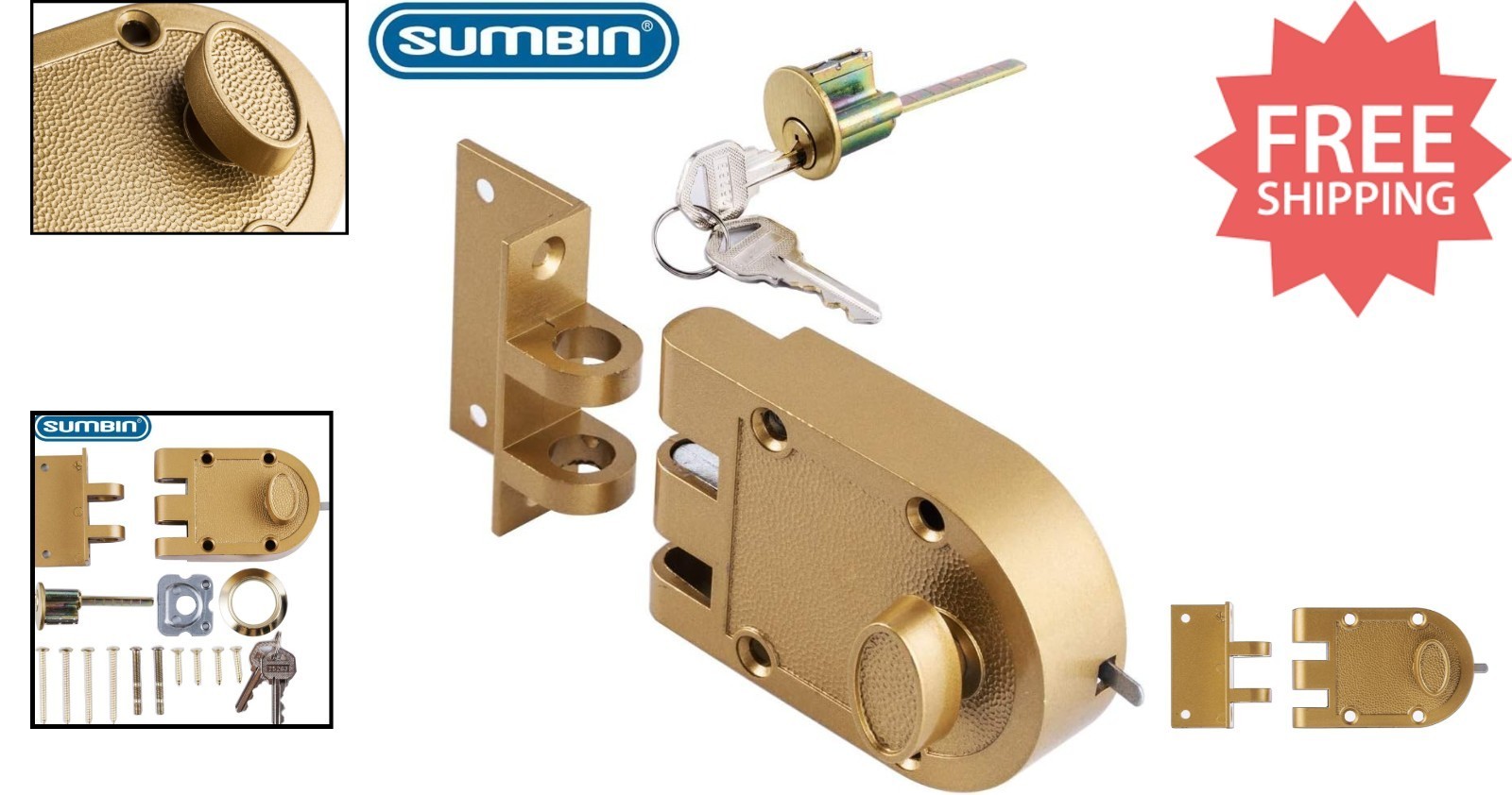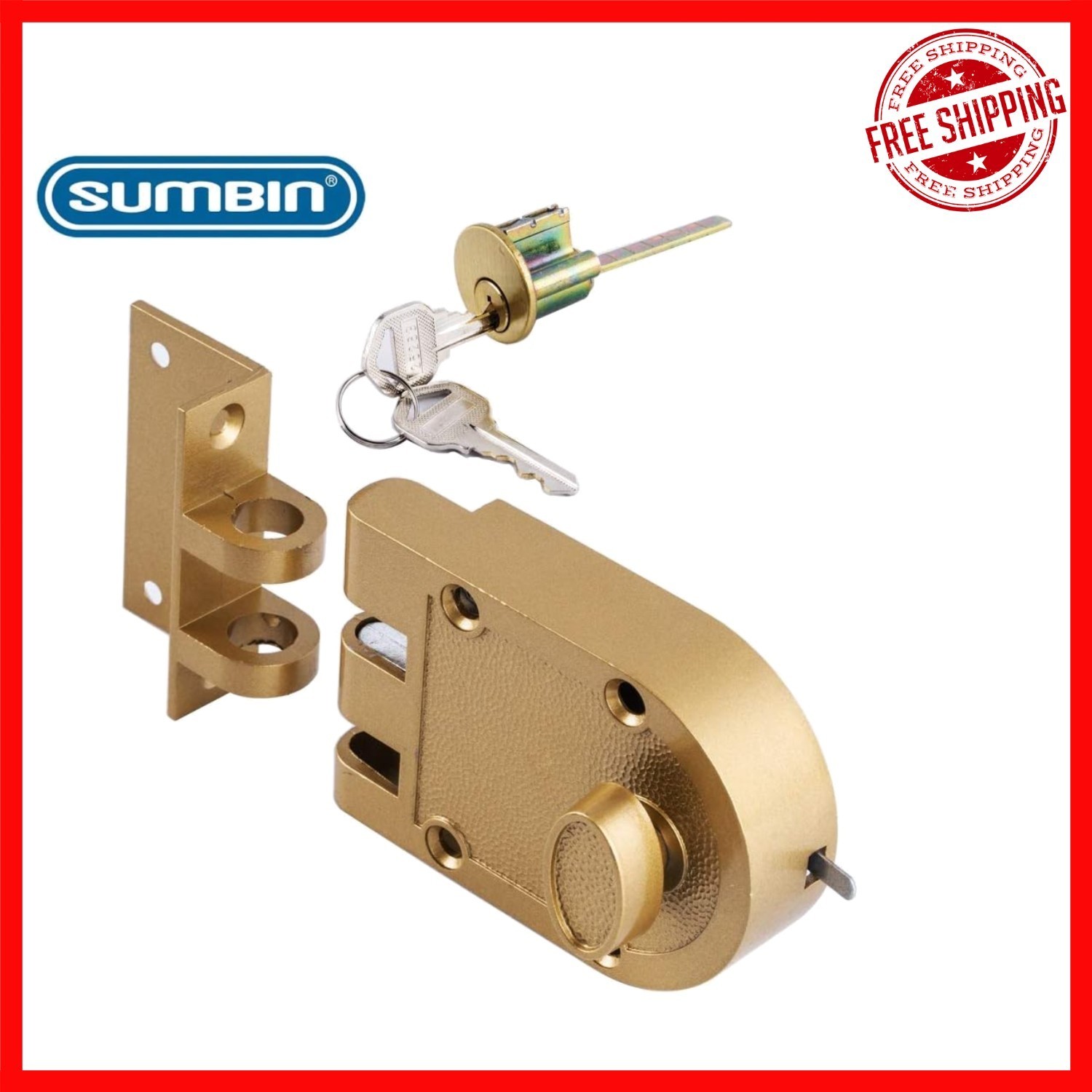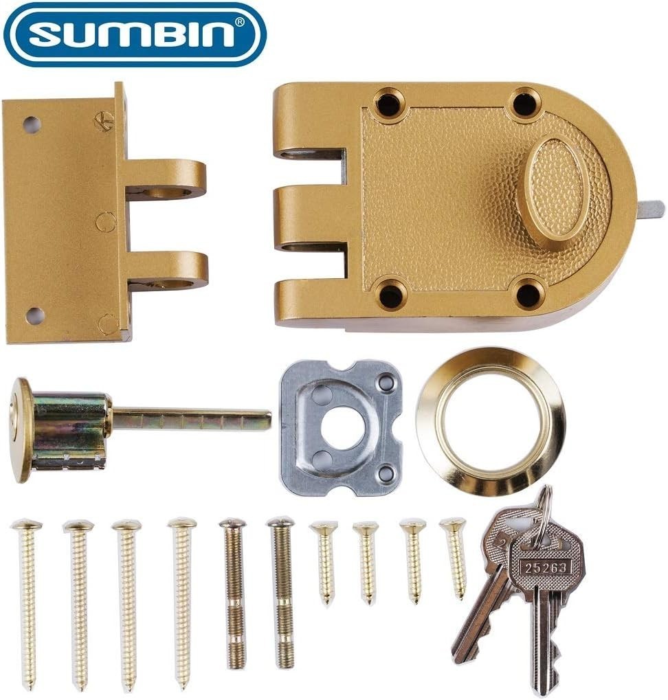 - Jimmy Proof Gold Deadbolt Lock with 2 Brass Keys - Fits 1.25" to 2.25" Doors