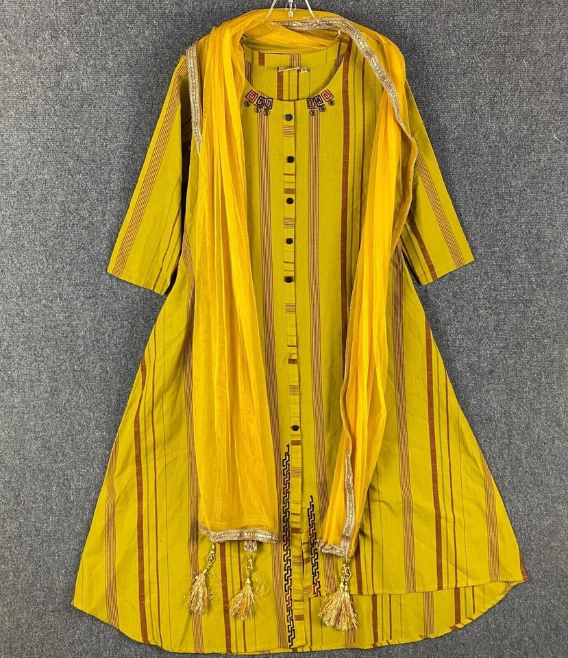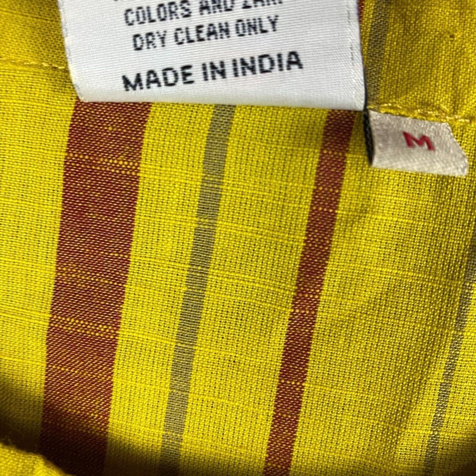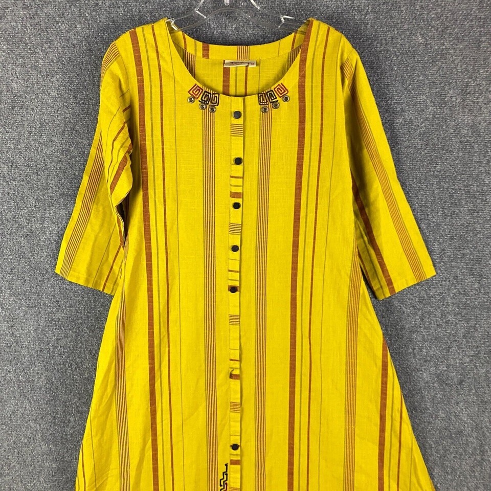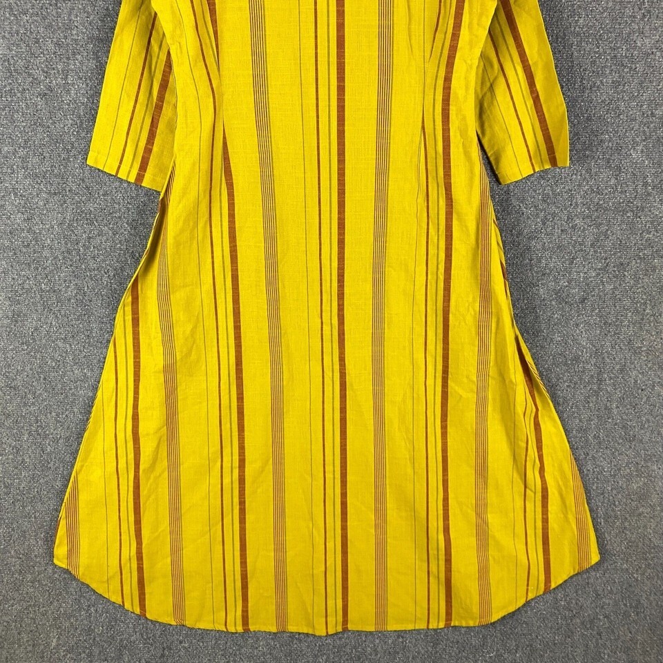 Jini Nimi Dress Women's Medium Indian Button Up Scarf Ribbon Striped Yellow