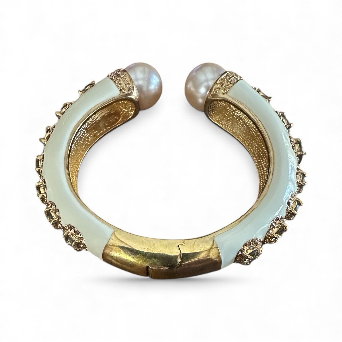 - Joan Rivers Classic Collection Cuff Bracelet Faux Pearl Cream Enamel Rhinestones