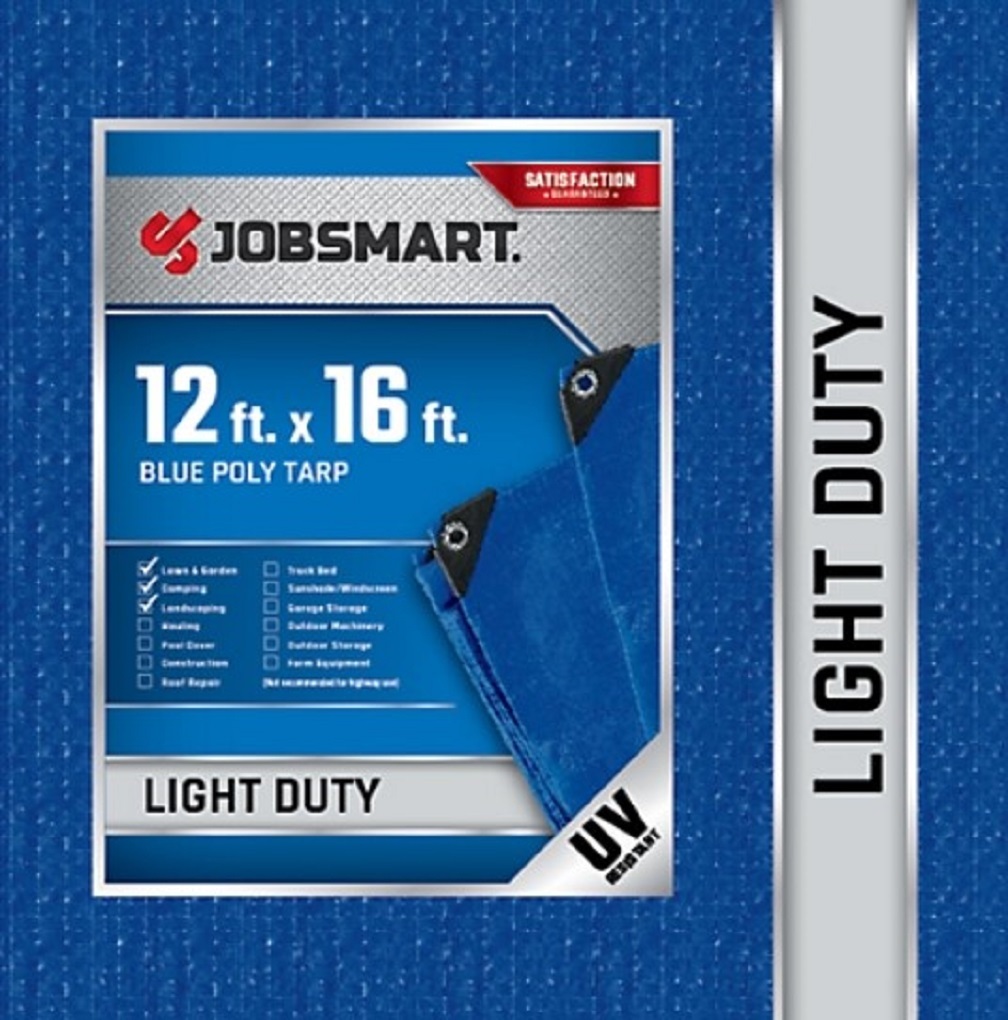 - JobSmart LDBL1216 Blue Polyethylene Tarp 12 ft. x 16 ft., Light Duty