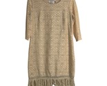 - Jody California Dress Womens Large Beige Lace Overlay Midi Fringe Hem USA Made
