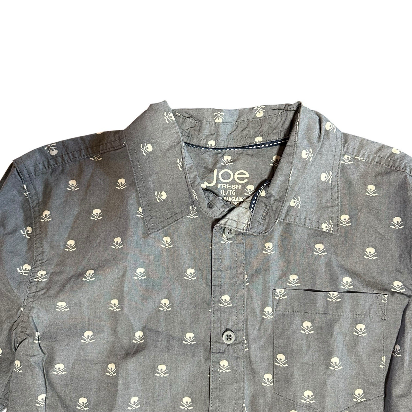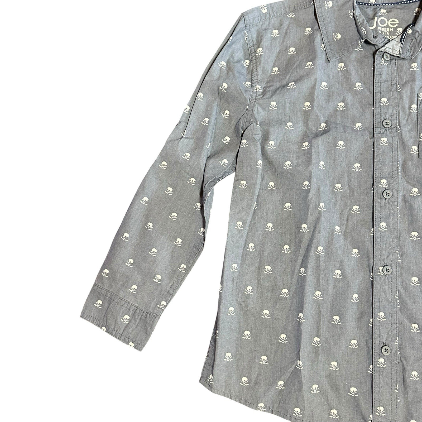 Joe Fresh Youth Boy's Gray Hockey Stick Helmet Button Front Long Sleeve Shirt New with Tags! Size XL, the Approximate Measurements are as Follows: Armpit to Armpit- 19" Length- 24.5" Add me to your Favorites list Visit My Store: Come Sale Away with Wendy