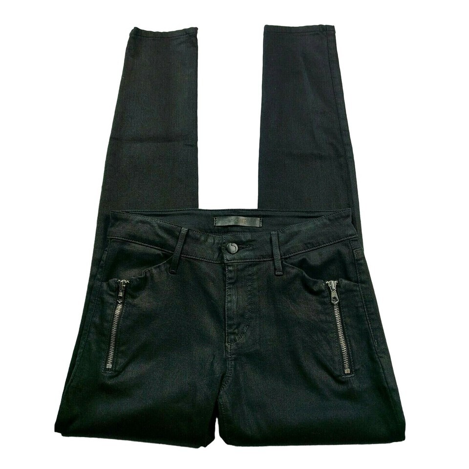 Joes Jeans Womens Rollin Zip Pocket Skinny Jeans Size 27 Solid Coated Black Size: 27 Condition: Excellent used condition with no rips or stains. From a smoke free and pet free home. Measurements were taken with garment laying flat and are approximate: Waist: 28" Hips: 32" Inseam: 29" Rise: 8.75" Leg Opening: 9.5" 12-19