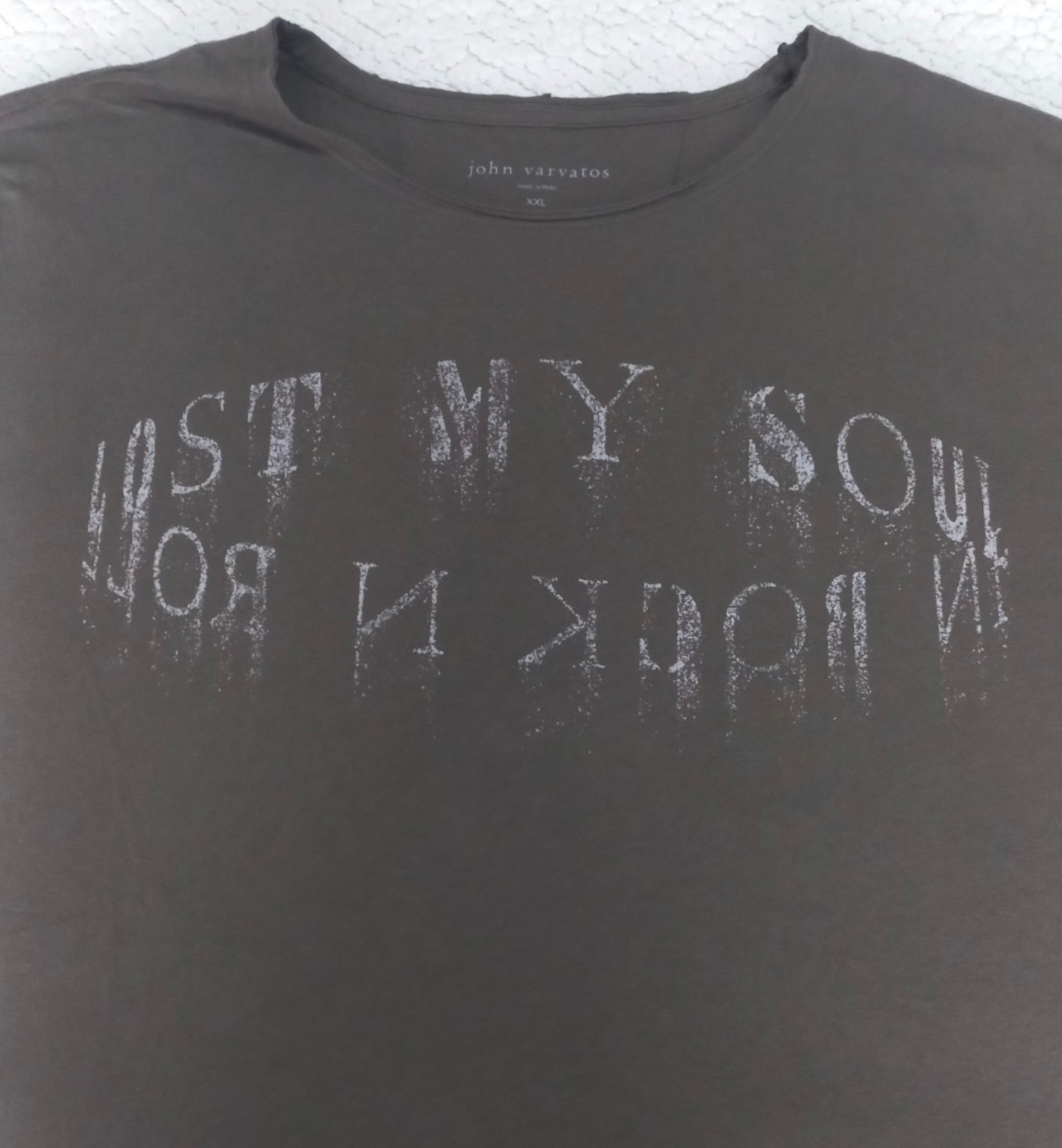 - John Varvatos Green Lost My Soul.... Raw Edge 100% Cotton Graphic Tee Shirt XXL