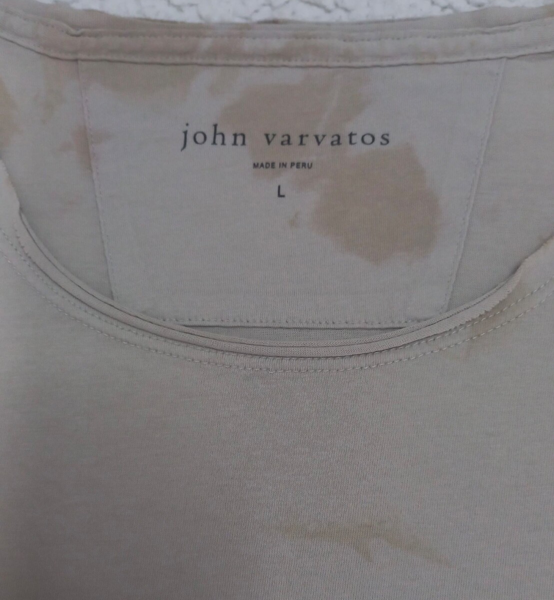 - John Varvatos T-Shirt Men Fossil Grey Let It Rock Raw Edge Short Sleeve L NWOT