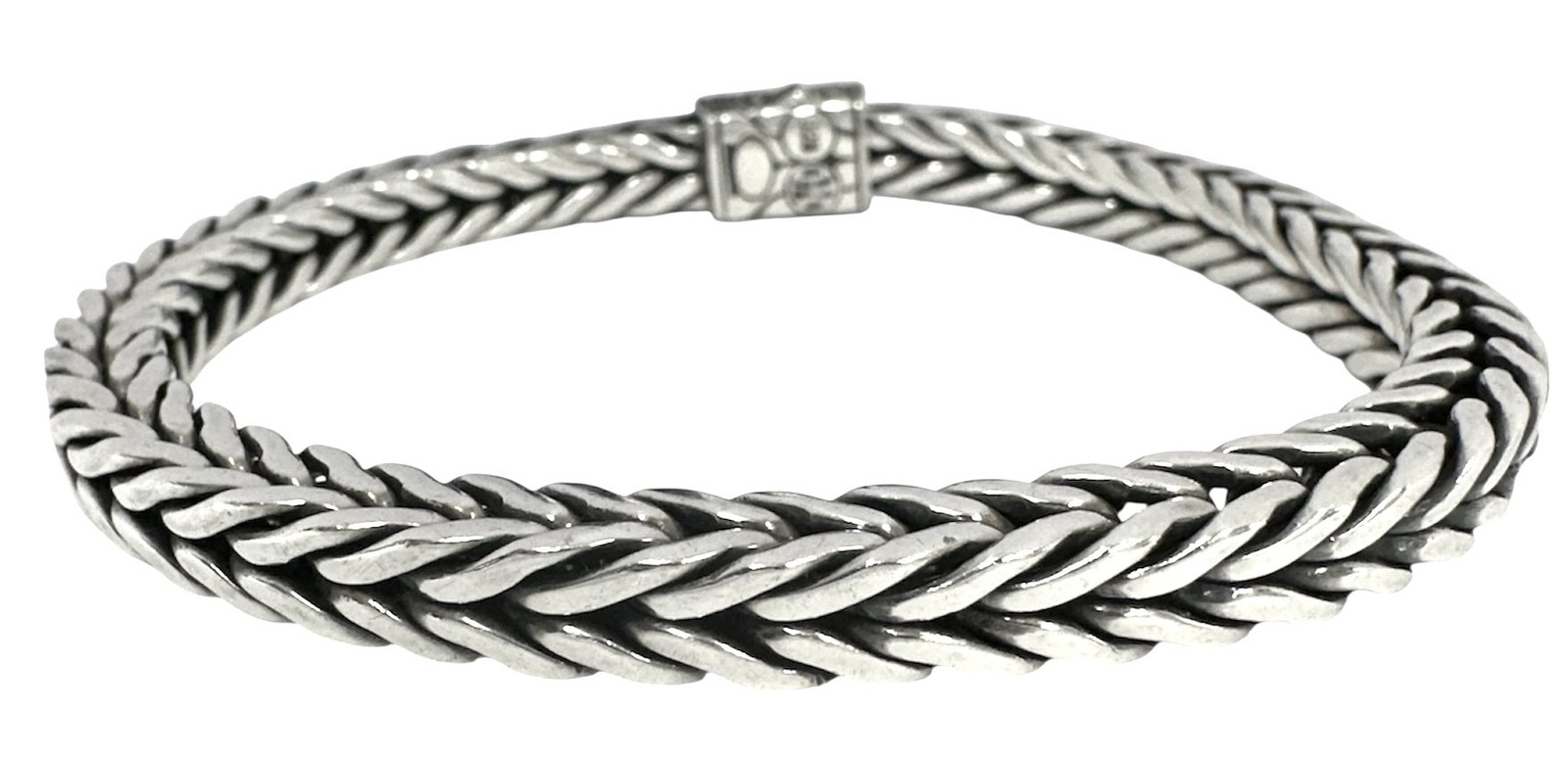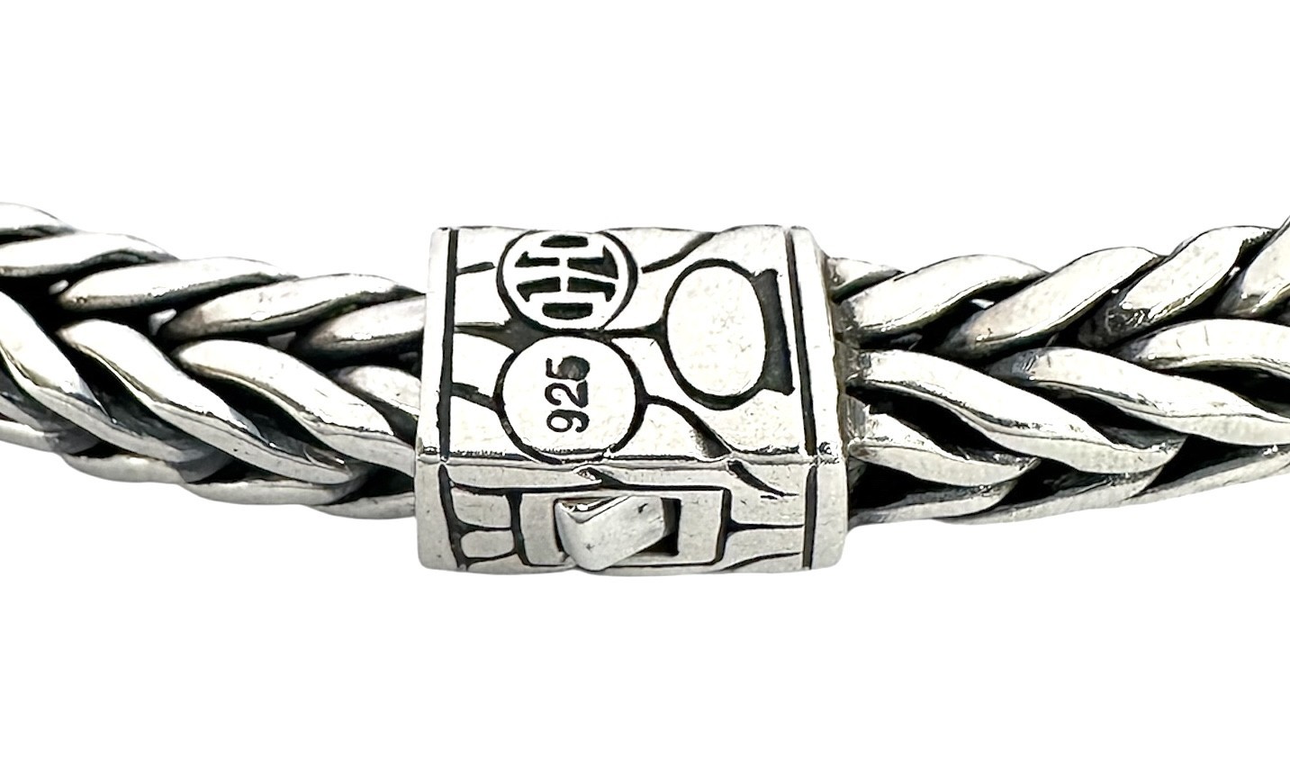 Type: BraceletWeight: 34.1Karat: .925Metal: SilverGender: Men'sStyle: FrancoBrand: John HardySize / Length: 8.5"Owner applied: JH 925Condition:Used
