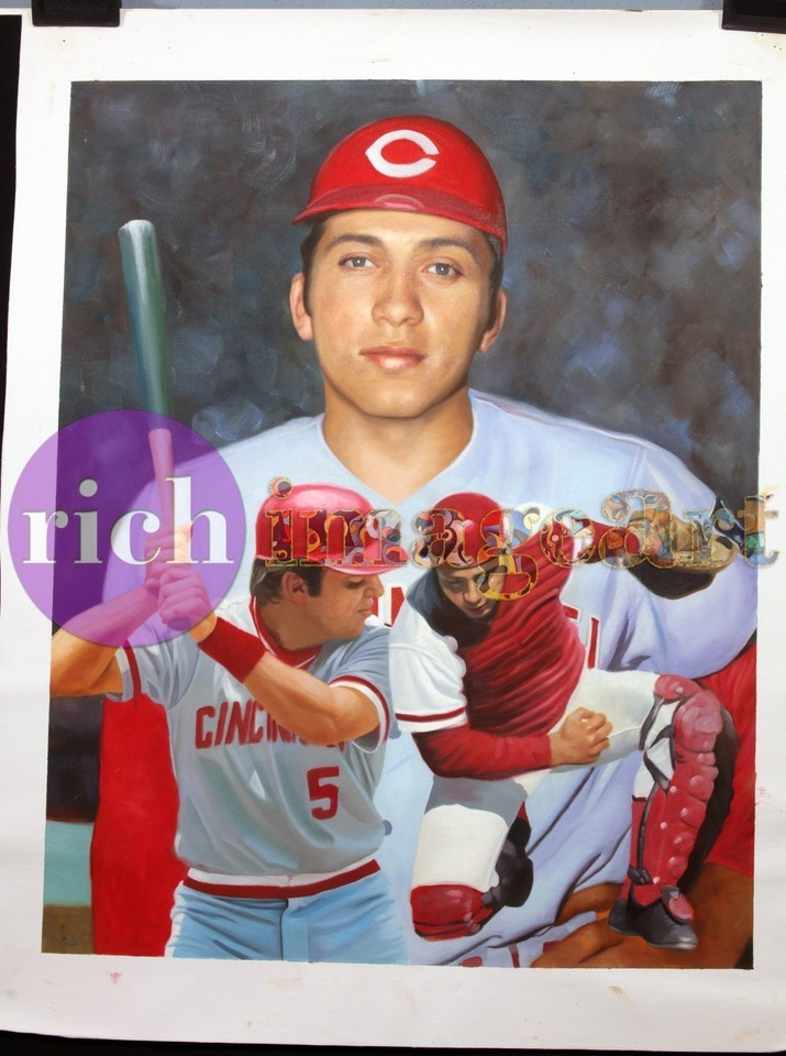 Johnny Bench Cincinnati Reds MLB Baseball Art Original Oil Painting 1