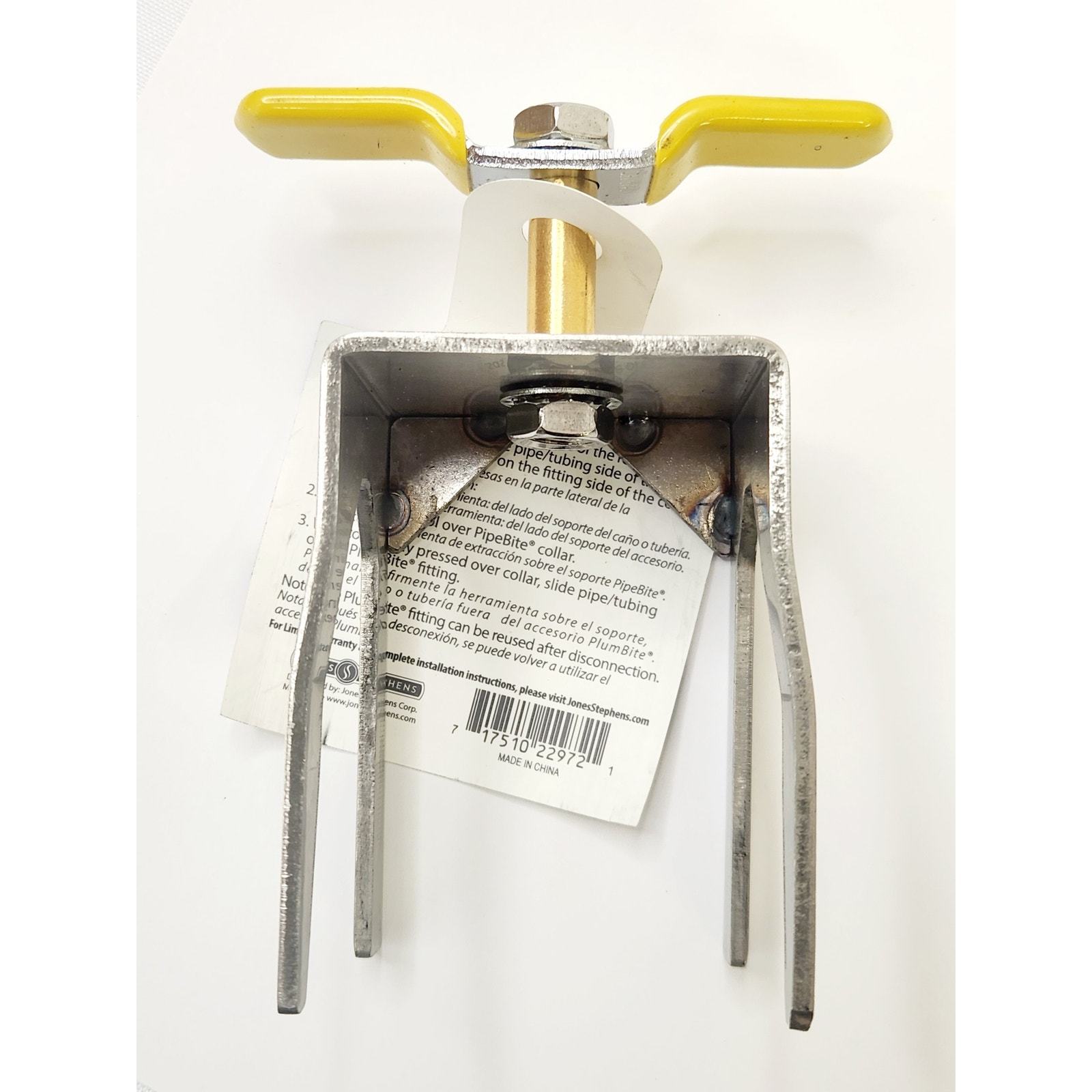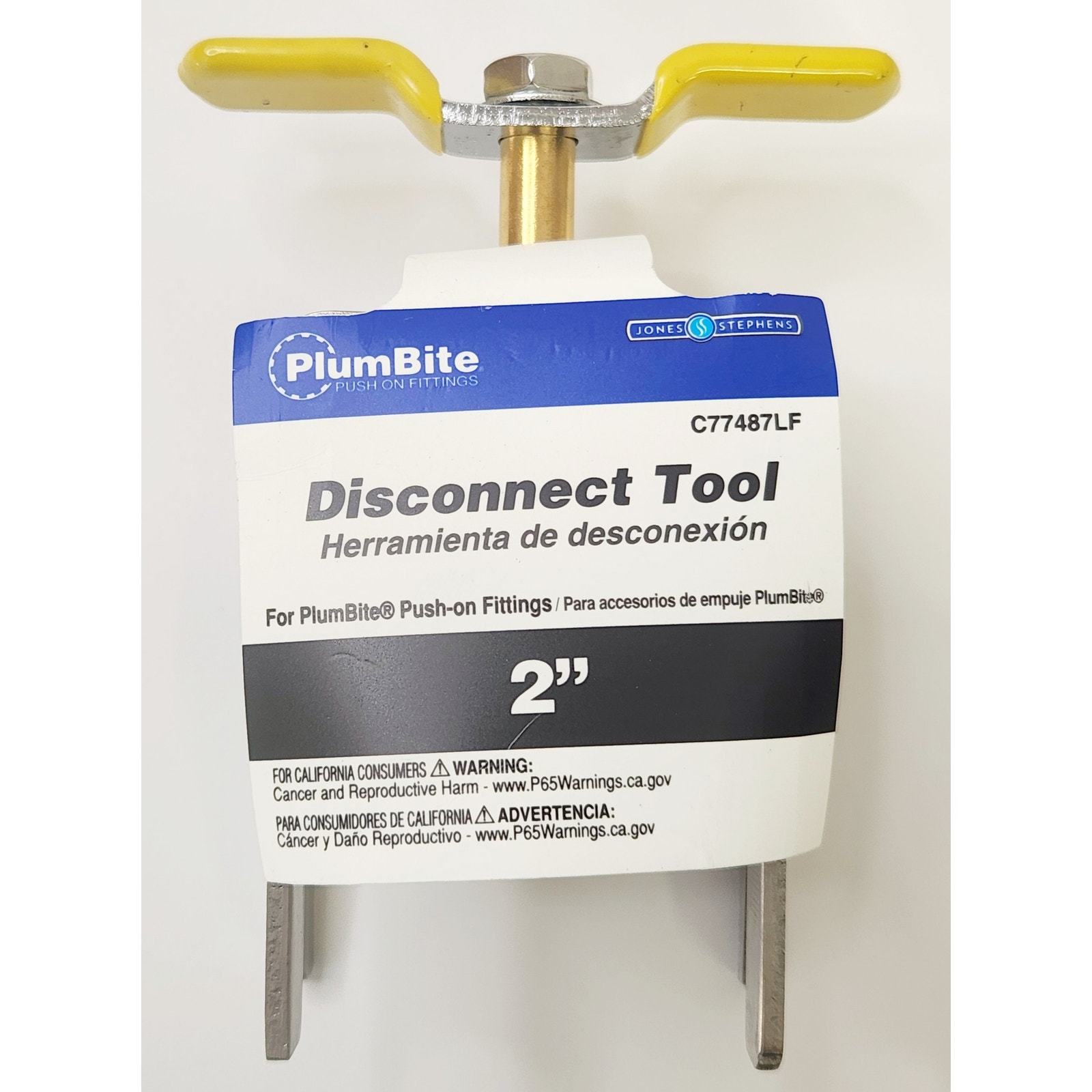 Thank you for visiting! All orders are shipped for FREE within the United States. For international sales, shipping costs will be added to the purchase price. Please contact us with your shipping address for a parcel quote. Orders before 2PM CST will be shipped the same day. Our items have never been installed and are sold as open-box products, unless otherwise noted. While the boxes may have slight damage, as shown in the pictures, the items themselves are carefully inspected to ensure they are not damaged or missing any pieces. We accept returns on items that have not been installed or damaged within 14 days of your purchase. In the rare event that an item is defective upon installation or has any blemishes not previously stated in the description, we will discuss a refund or exchange. Please, reach out if you have any issues that need to be addressed. Our goal is to achieve complete customer satisfaction. We appreciate you viewing this listing and look forward to serving you. Jones Stephens C77487LF 2" PlumBite Push On Removal Tool Jones Stephens PlumBite push on fittings are an extremely fast method of joining Copper, CPVC, PE-RT or PEX piping. No soldering, glue, heat or tools are required to join the pipe. Simply insert the pipe into the fitting and the stainless steel gripper ring bites the pipe holding it tightly. A rugged EPDM O-ring seals the connection. Disassembly is just as fast using the optional disassembly tool, so fittings can be easily removed and re-used. PlumBite push on fittings are designed to connect pipe with ease and confidence while saving time on the job site. Perfect for service and repair jobs! Allows PlumBite push on fittings to be disassembled and re-used Slides over fitting to remove fitting easily Heavy duty stainless steel construction Tee handle with vinyl grip