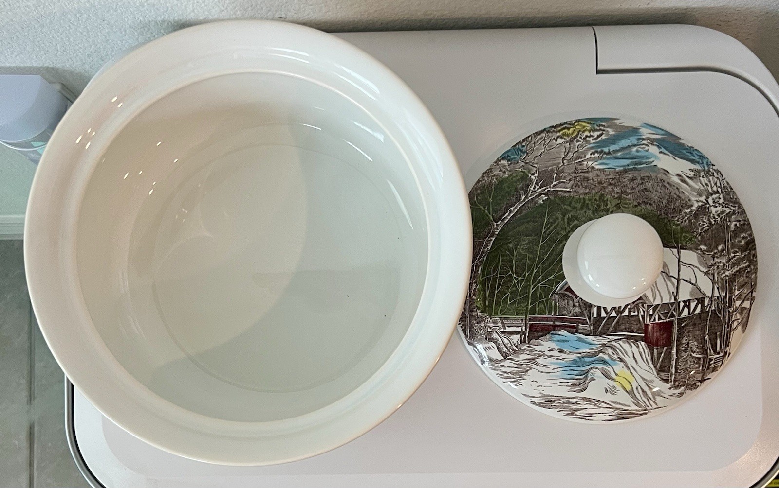 - Jonhson Bros Friendly Village Covered Bridge Covered Casserole
