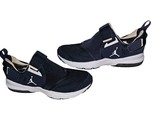 The Jordan Trunner LX 11 Obsidian Men's Size 11 in Navy Blue/White is a stylish and comfortable sneaker designed for activewear. Featuring a lace-up closure and a low-top silhouette, this shoe is perfect for basketball and everyday wear. Made with a rubber outsole and a foam insole, the Jordan Trunner offers a standard shoe width and is part of the Air Jordan product line. The colorblock pattern, logo theme, and MJ character add a touch of style to this classic sneaker.