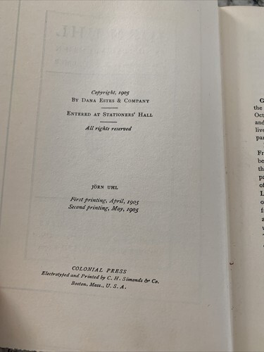 - Jorn Uhl by Gustav Frenssen, 1905 Stated Second Printing Rare