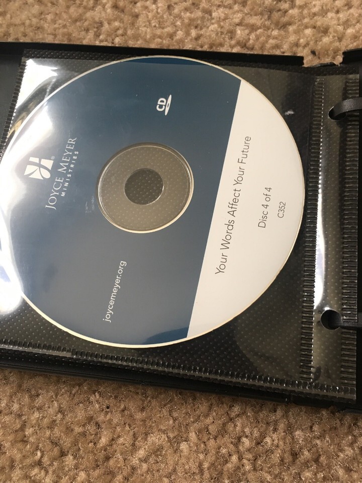Change Your Words Change Your Life...Joyce Meyer Religious 4 CD Set in great overall condition. There are a few scratches on some of the CD's but all play very good. The CD 's plastic cover is torn and wrinkled in places but no damage to the CD's whatsoever.