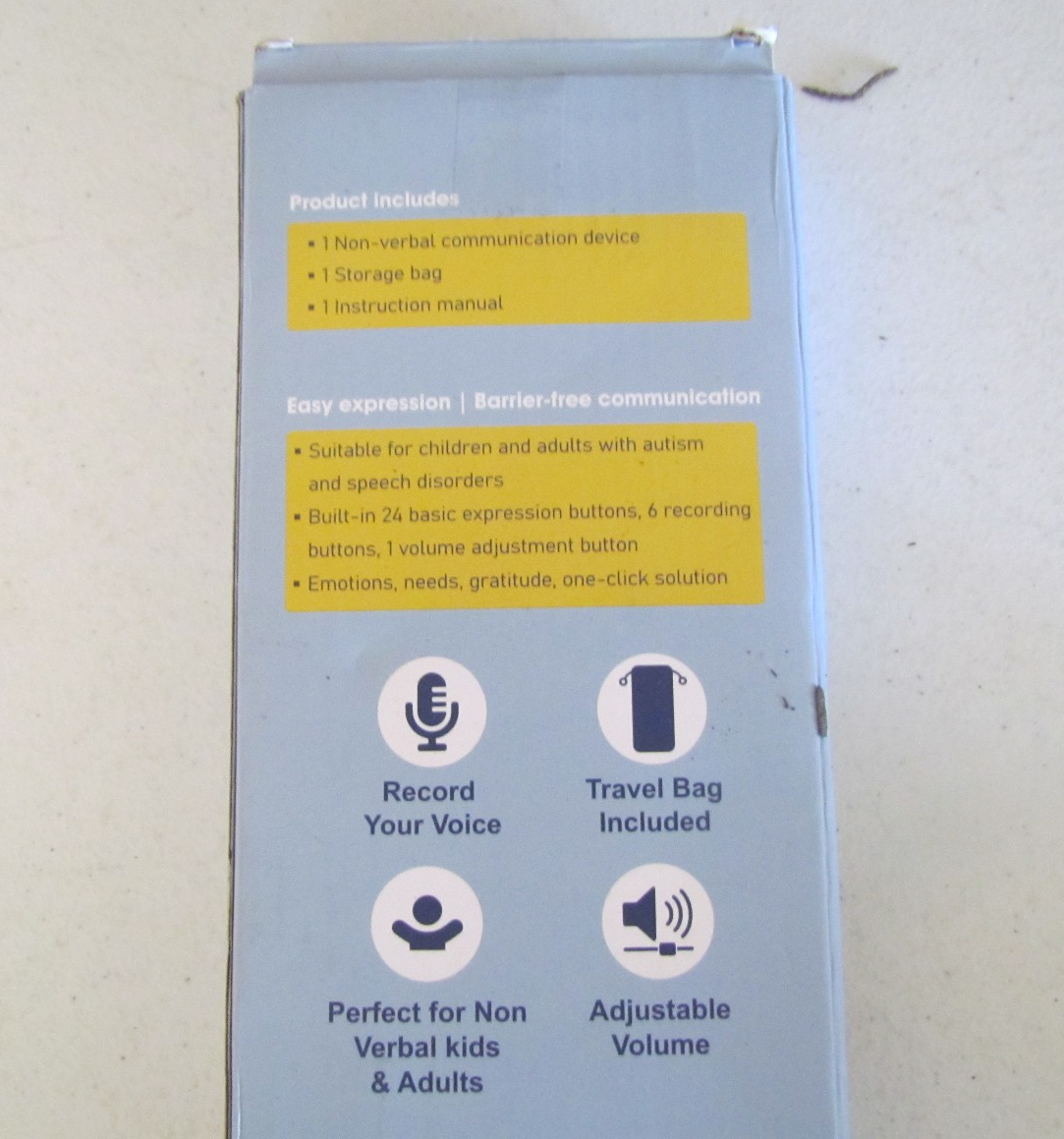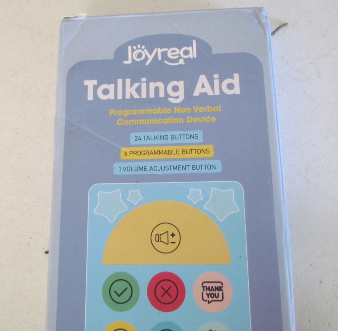 The Joyreal AAC Device for Autism is a tool designed for speech therapy, specifically catering to non-verbal communication needs. With its compact package dimensions of 12.2 x 3.7 x 1.14 inches and weighing only 5.29 ounces, this device is convenient for use by individuals with autism. The blue color and sleek design make it visually appealing for both children and adults engaging in speech therapy sessions. Manufactured by Joyreal, this AAC device provides a user-friendly interface for communication, allowing individuals to connect and express themselves effectively. New Box is a little rough, may not make a good gift?
