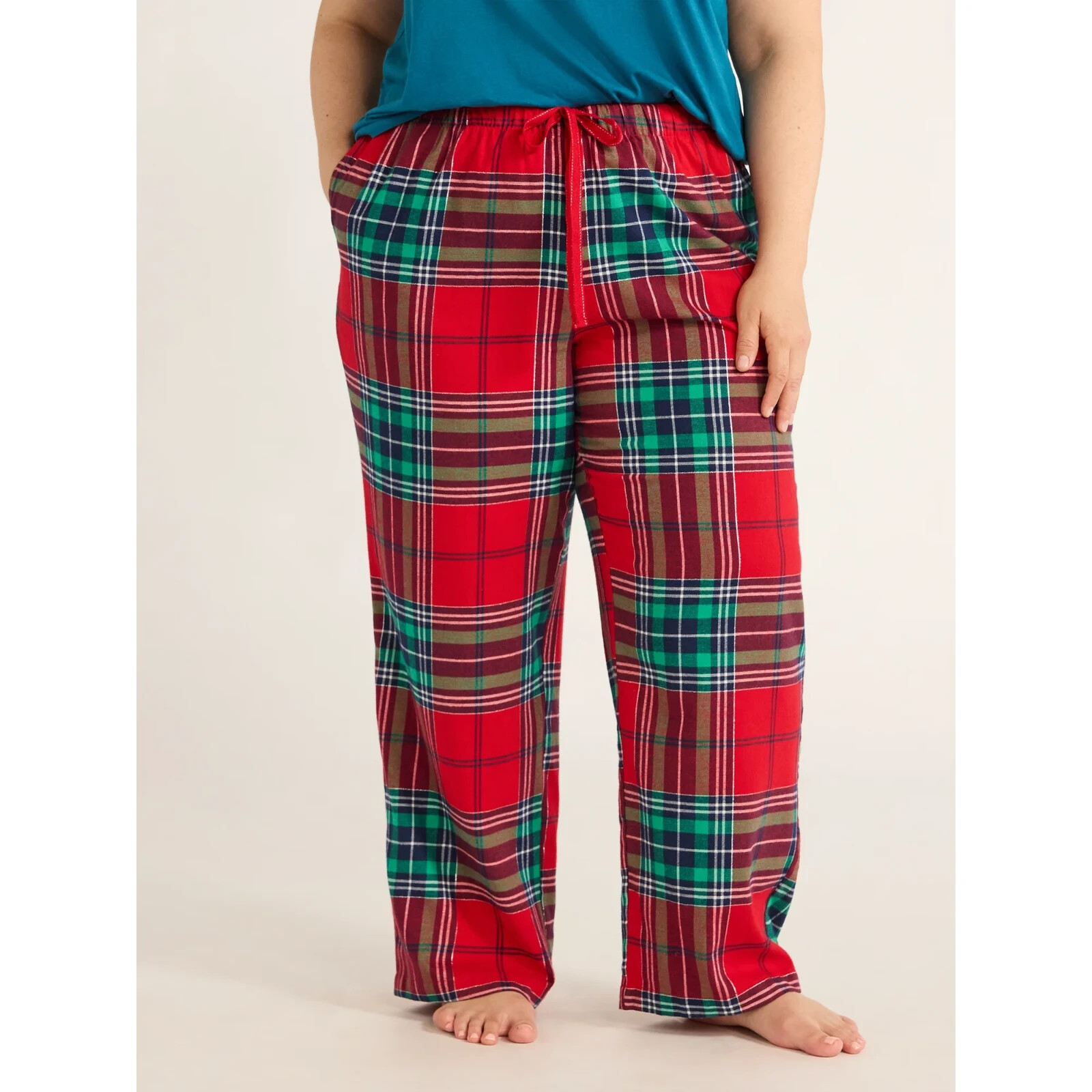 Joyspun Women's Flannel 30? Inseam Sleep Pants, Red Pepper Size 2X(18W-20W) Drift off to dreamland with Joyspun?s Flannel Sleep Pants. Relaxed, with a straight leg silhouette (and side pockets!), these softer-than-soft pajama pants are crafted from a brushed cotton blend, feature a fun print or pattern and fit just right thanks to the adjustable drawstring. Material: 57% Cotton/22% Rayon/21% Polyester Care: Machine washable Fit: Relaxed; straight leg Rise and Inseam: Mid-rise; 30? inseam Closure: Pull-on styling; elastic waistband with drawstring tie Pockets: Two side-seam pockets Features: Ultra-soft flannel Flannel Sleep Pants for Women from Joyspun