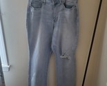These high waisted straight fit jeans are still new with tags! They have a ripped design. The waist across is 18". The rise is approx 12". The inseam is approx 29".