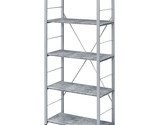 Features: Rectangular Bookshelf (Etagere Style) Storage: 4 Open Compartment (4 Wooden Shelves, Fixed) Orientation: Freestanding (Wall Tall) Faux Concrete Shelves Metal Frame (Back Open) Set Includes: One (1) Bookshelf