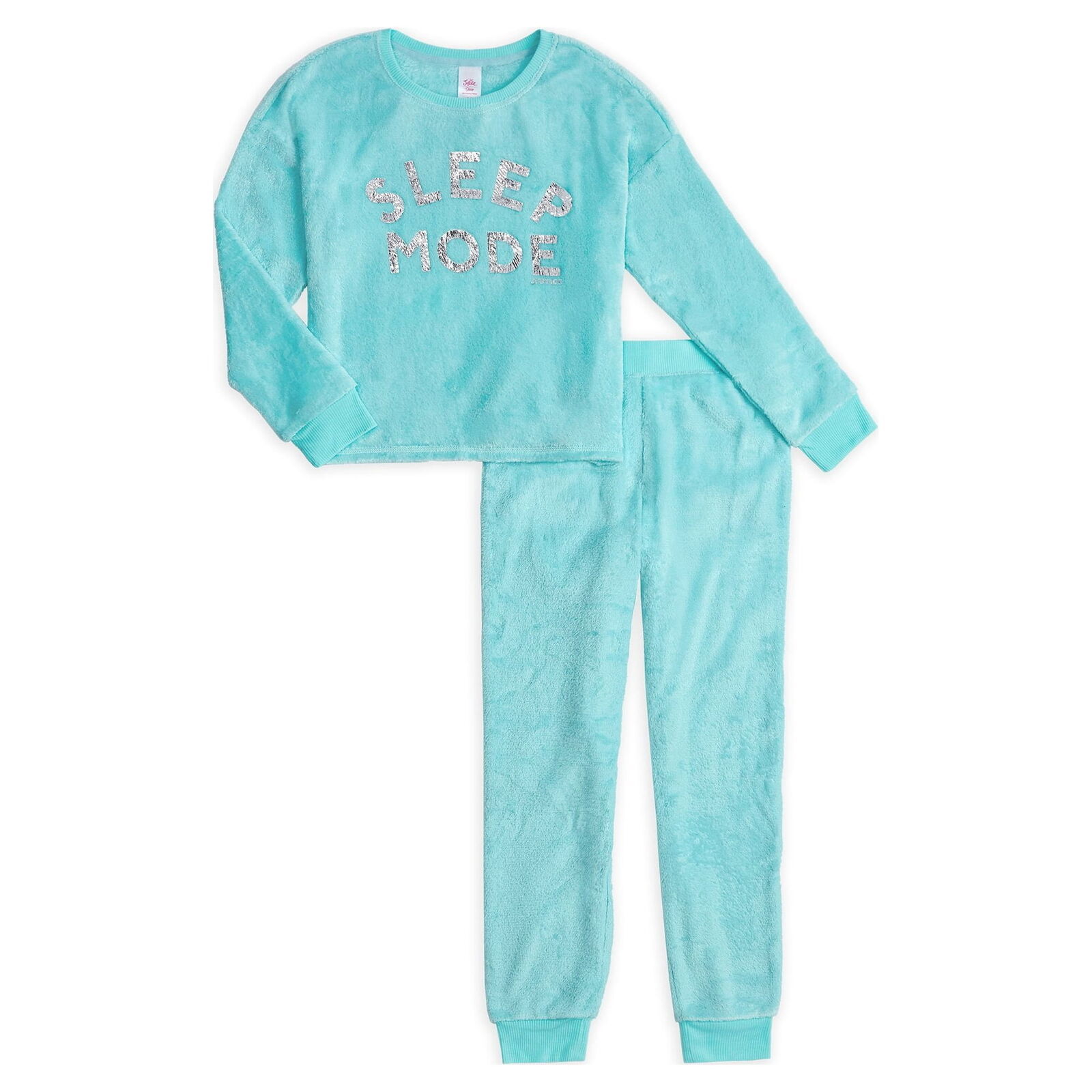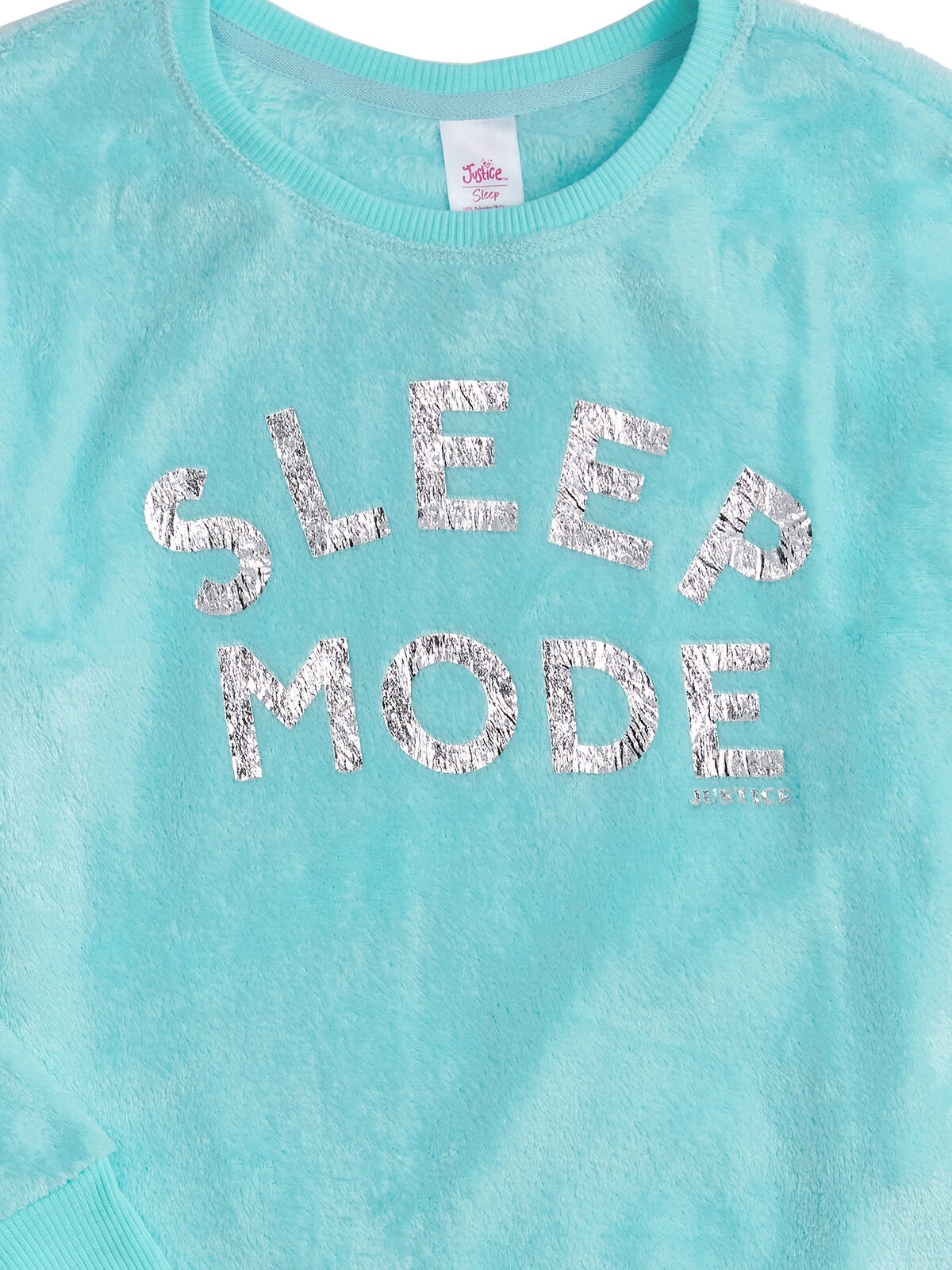 Justice Girls Long Sleeve Fleece Lounge Pant 2-Piece Set, Blue Size L (12-14) 2-piece Set Includes: Long Sleeve, Drop Shoulder Top and Long Pant Long Sleeve Top: Long Sleeve, Drop Shoulder, Allover Prints, Graphic Foil Print on Front Pant: Pull-on Style, Elasticized Waistband Made of 100% Polyester Velvet Fleece Machine Washable