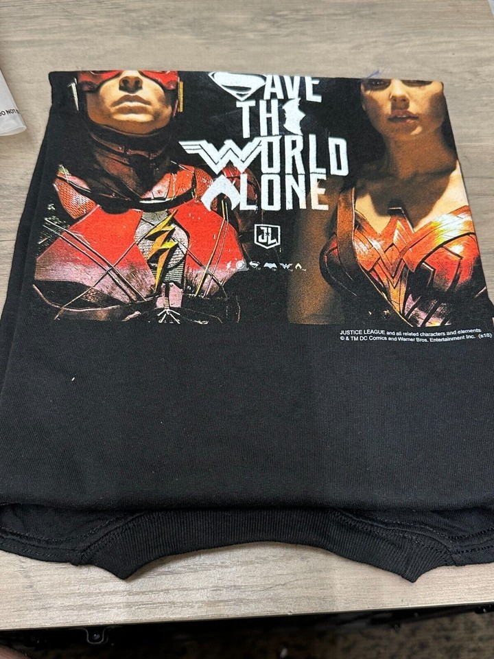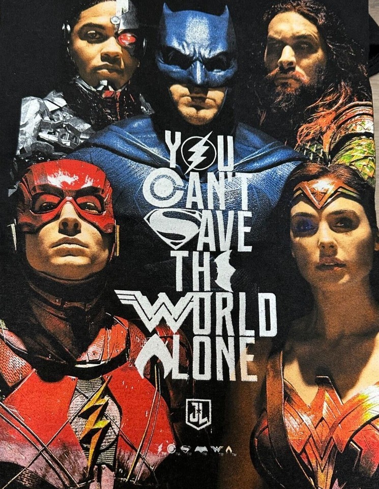 - JUSTICE LEAGUE You Can't Save the World Alone Graphitti T-Shirt Large L NEW