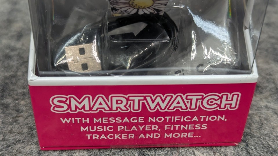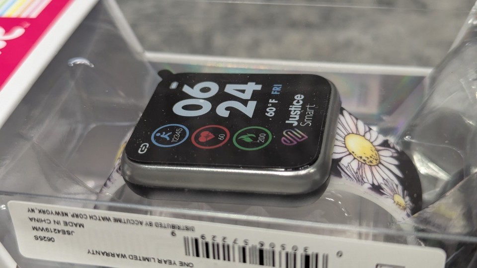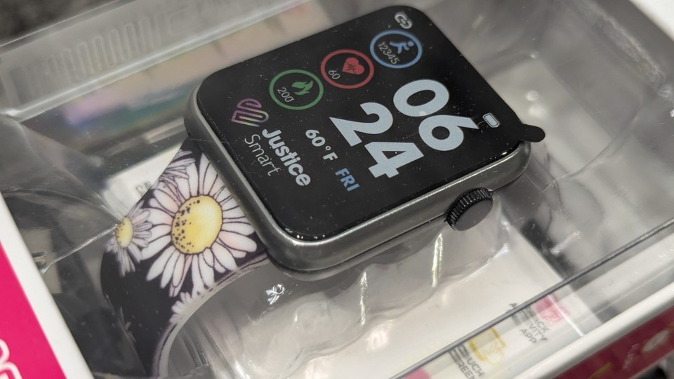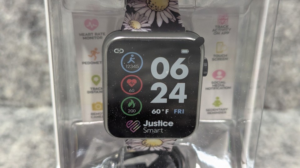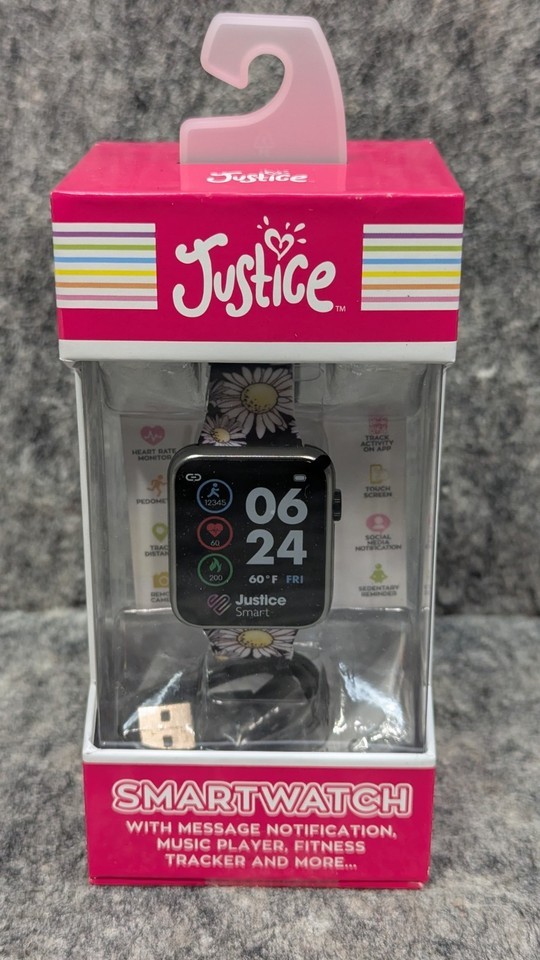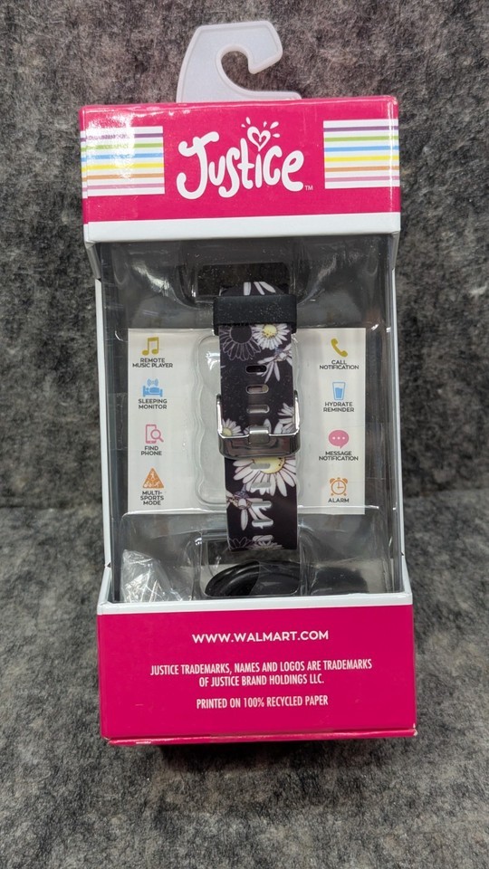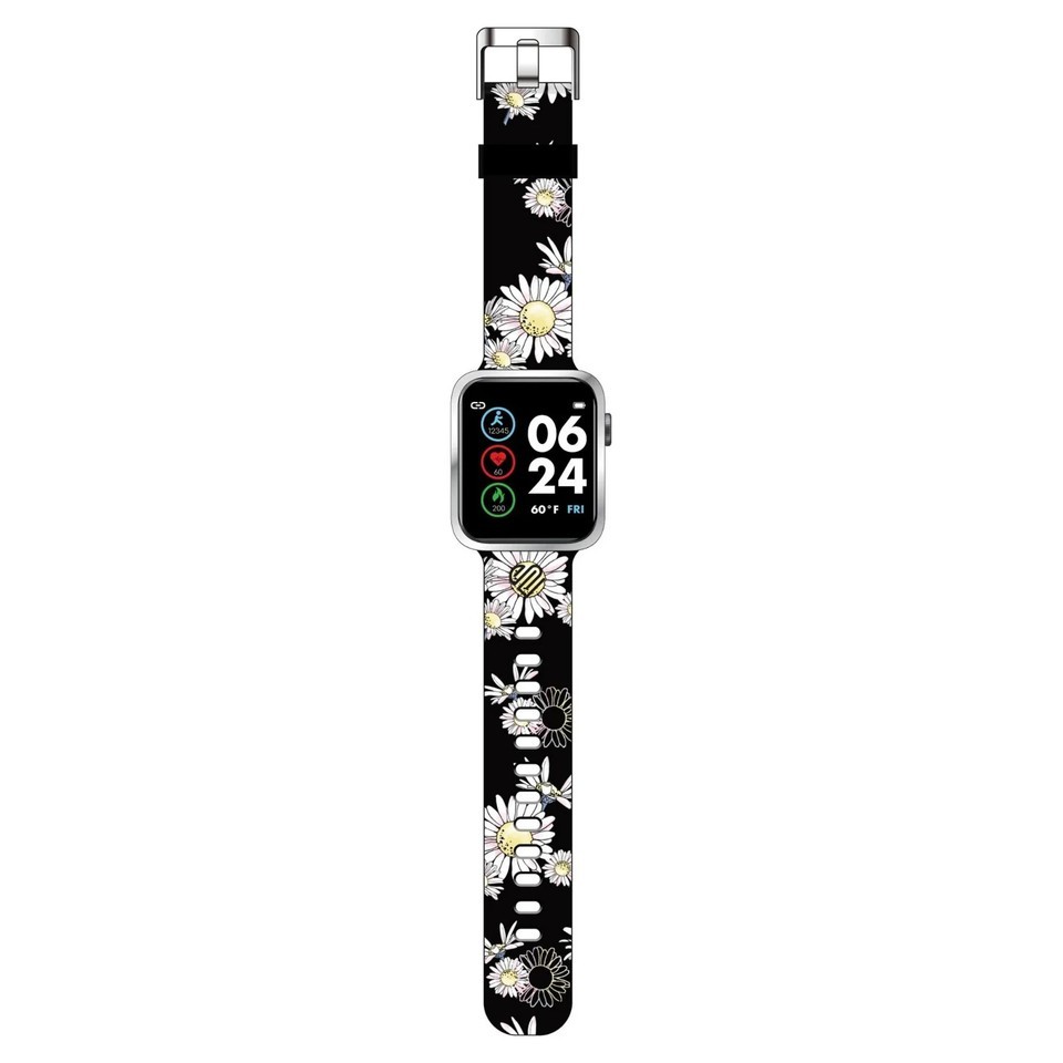 Justice Unisex Tween Smart Watch Black Daisy Strap w/ Silicone Strap JSE4219WM