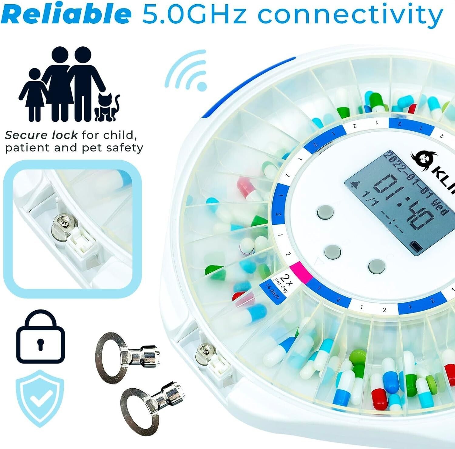 - KLIM Smart Pill Dispenser Machine with Alarm WiFi App Monitoring ~NEW~