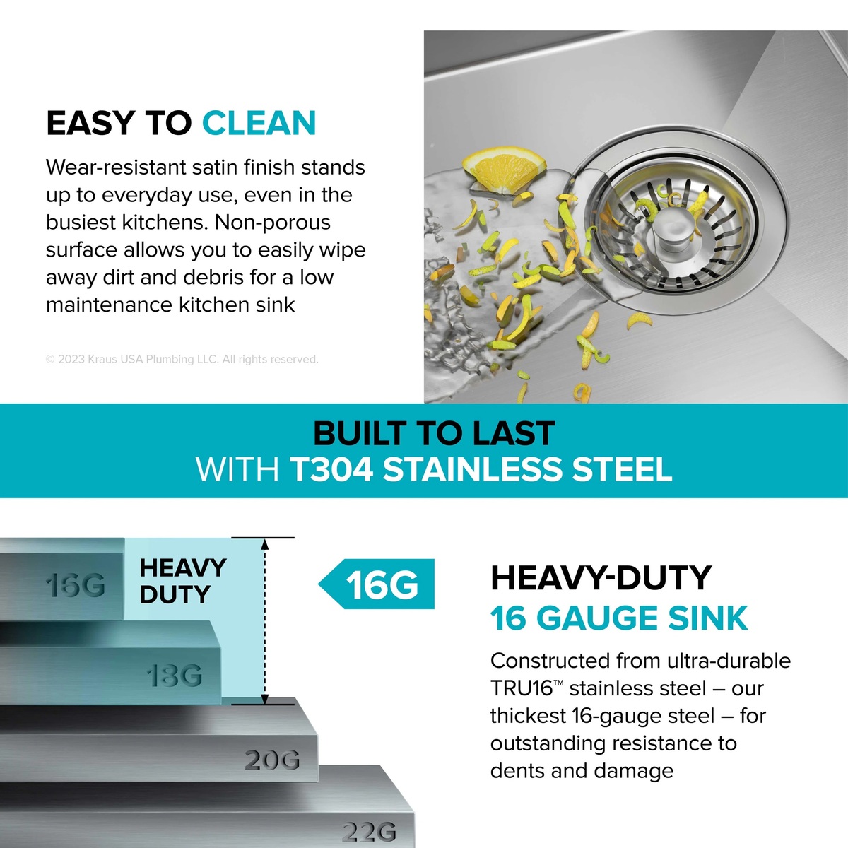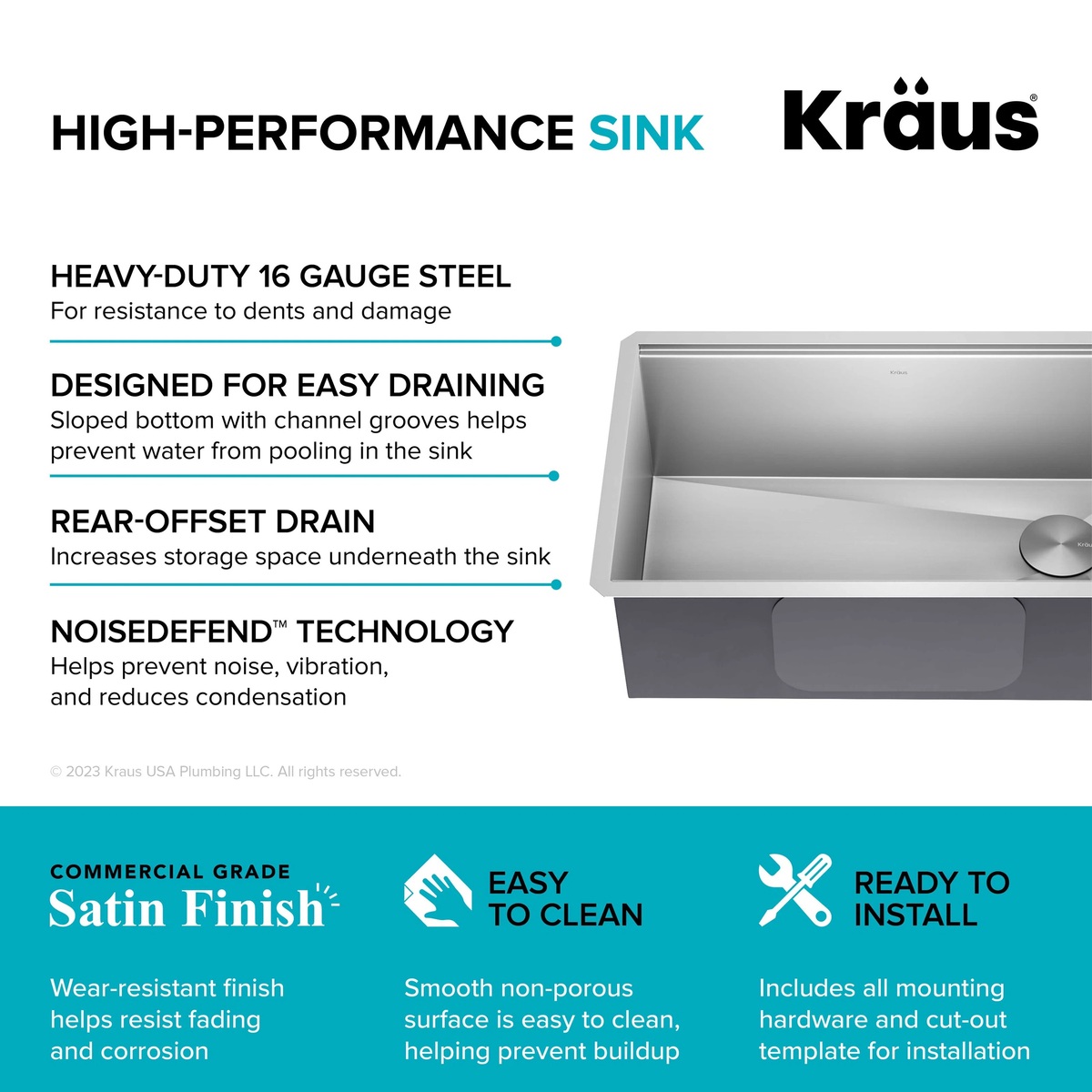 Upgrade your kitchen with the KRAUS Kore KWU110-30 Workstation Sink — a premium 30-inch undermount single-bowl sink designed for performance, durability, and modern convenience. Crafted from high-quality 16-gauge stainless steel, this sink delivers exceptional strength and long-lasting reliability.