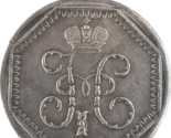 Entworfen mit einer Aufhangeschlaufe, war es eindeutig zum Tragen gedacht, was seinen Status als sichtbares Zeichen kaiserlicher Gunst unterstreicht. Die Vorderseite zeigt das Monogramm von Kaiser Nikolaus I. (? I.) unter der Kaiserkrone, elegant in kyrillischer Schrift wiedergegeben. Nikolaus I., der von 1825 bis 1855 regierte, war bekannt für seine autokratische Regierungsführung und Bemühungen, die kaiserliche Kontrolle zu festigen. Die stilisierten Initialen und der achteckige Rahmen rufen ein Gefühl von Ordnung und Autoritat hervor, das seine Herrschaft widerspiegelt.