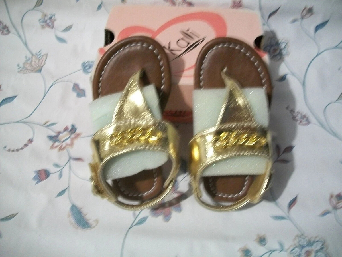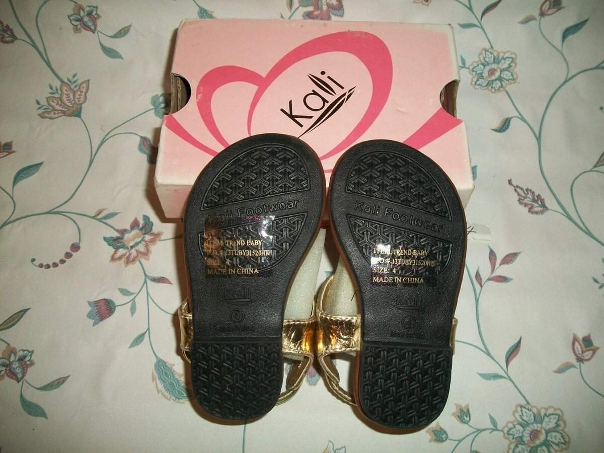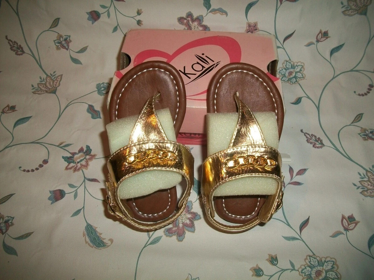 This listing is for one (1) Kali Kid Trend Baby Gold Scandals Size 4. Product Information: Kali Kid Trend Baby Silver Scandals in size 2. Box may have a little damage. Please make sure to read all terms before you commit to buying this item. By purchasing this item you agree to all terms and conditions. Thank you for looking ! ***We sell new, shelf pulls, discontinued and closeouts items. While this is a picture of the product, color monitors vary, therefore pictures are for photo purposes and product identification only.*** Payment must be received no later than 3 day from end of a buy it now or auction. If problems arise and you cannot make your payment in the given time, please contact us through our address. Otherwise, I reserve the right to re-list the item or offer the item to the another bidder and will be notified for non-payment. Buyer agrees to pay the listed shipping/handling charges. My shipping prices are very clear on every auction. Please make note of my shipping charges before bidding. I ship Monday through Friday. Packages generally are mailed on the next business day after payment has been confirmed. I'm not responsible if your addresses are different from your actual shipping address. Please make sure to include the proper and correct shipping address to avoid any errors or confusion during the shipping process. You will be responsible for any additional fees that are incurred from sending an invalid shipping address. Additional International Shipping information and Regulations: We offer the following International Shipping methods in our listings- Priority Mail International First Class International Priority Mail International is our preferred method of international shipping. Item weight and package dimensions are entered in and the price is automatically figured by 's shipping Calculator. This method has a much faster delivery time. We offer First Class International as a shipping option, to all international customers, to provide the lowest shipping price possible. First Class International mail does not provide the option of a tracking number that extends past the closest U.S. sorting facility / Customs office. Because of this, All International orders are F.O.B North Carolina. By selecting First Class International mail as your preferred shipping method, You understand that delays or customs holds can be placed on your shipment. Depending on your region delivery time can take 30 days or longer if it is during holidays or any delays in mail. We can in no way control the delivery time for your shipment. Import duties, taxes, and/or charges are not included in the item price or shipping cost. These charges are the buyer's responsibility. Please check with your country's customs office to determine what these additional costs will be prior to buying. Additional information regarding shipping includes: With every item we ship there is a label or tracking number, So, we can prove it has been shipped out. Any refund that may be issued Will Not receive the shipping cost back, only the price paid for the product. Disclaimer regarding shipping, handling and merchandise: We purchase our items from all over the country and all types of venues. We make no claim as to whether or not they come from smoke free or pet free facilities. As a precaution, we wipe down every product packaging that is shipped with antibacterial sanitizer to ensure safe merchandise. If the smell of antibacterial sanitizer or the information that we provide regarding our products bothers you, please be advised that we do this and have informed you and use caution in your purchase.
