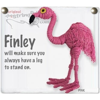 Kamibashi Finley the Flamingo The Original String Doll Gang Keychain Backpack Clip * Approx Size: 2" - 3" * Each String Doll includes lobster claw keyring * Each String Doll has a double-sided fabric tag with characters name * Handmade in Thailand * A Fair Trade Product * For Ages 6+ * Collect all the string doll gang characters Meet the String Doll Gang, a band of kooky characters that has been growing steadily since their debut in May, 2005. Handmade in Thailand, each String Doll has his or her own special power that is always positive and helpful. They are fun for the whole family and make the perfect gift for any occasion. Please note: Because these are handmade, color may vary from what is pictured