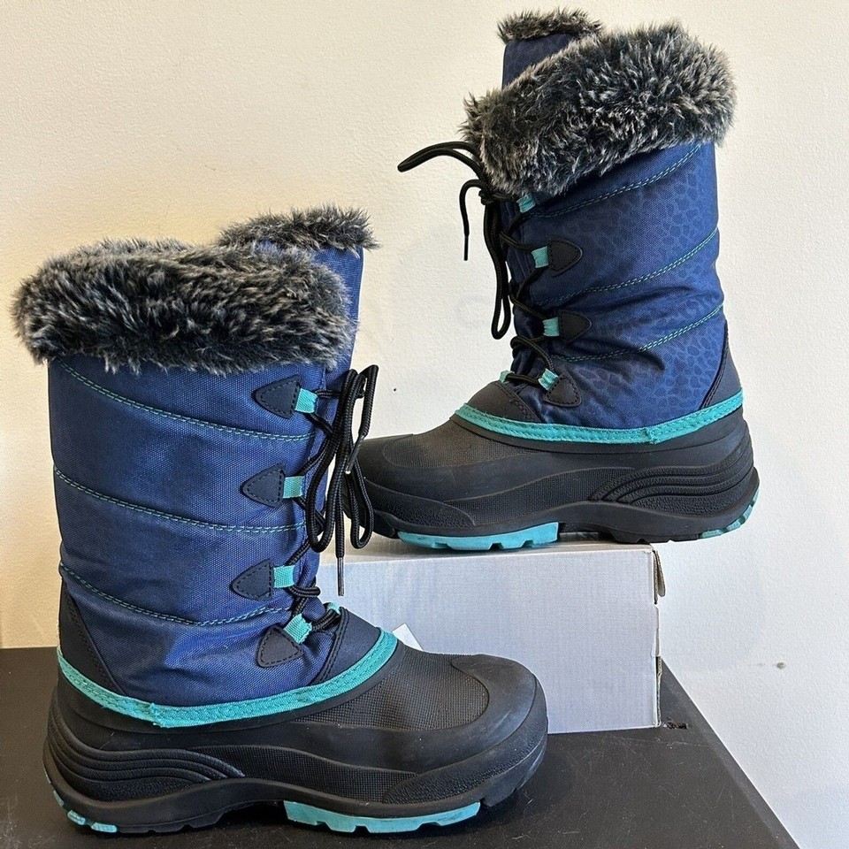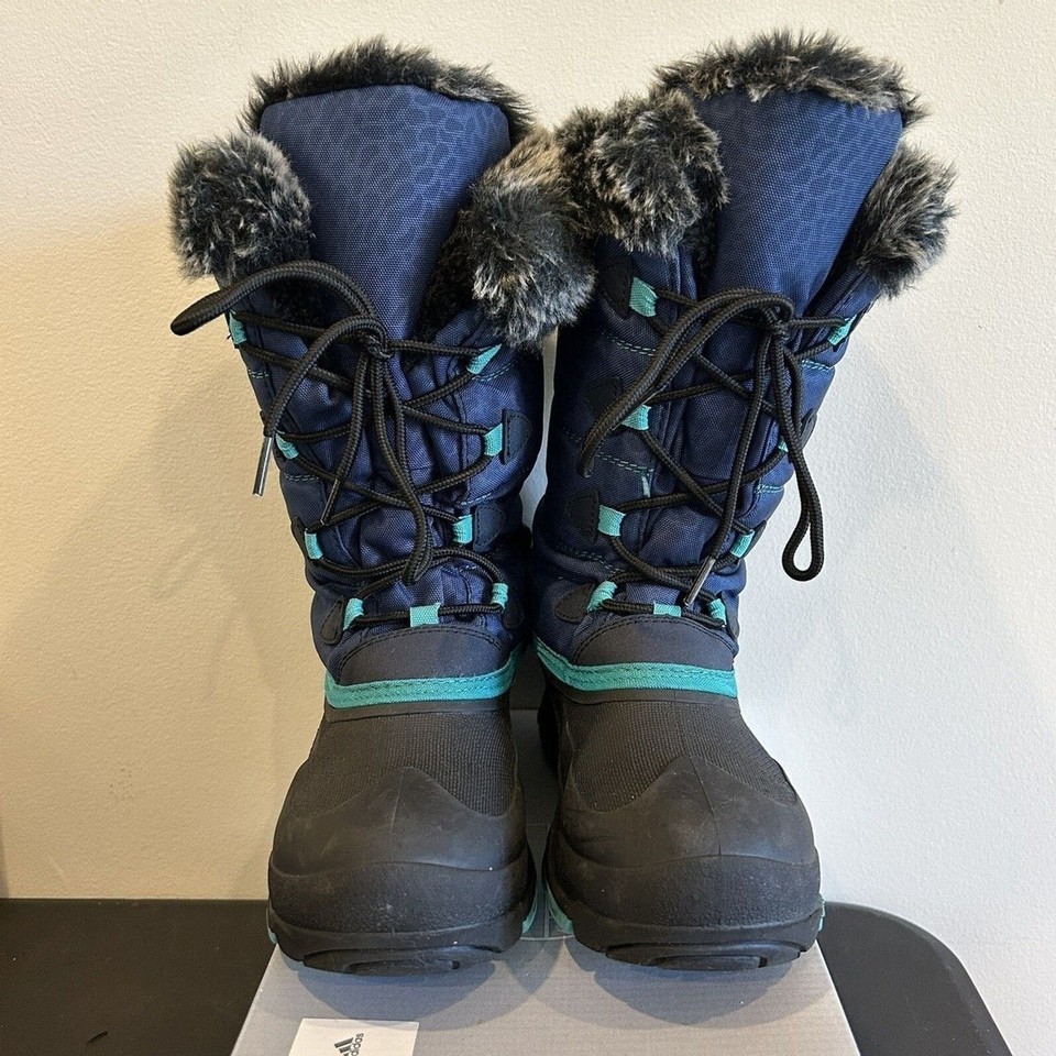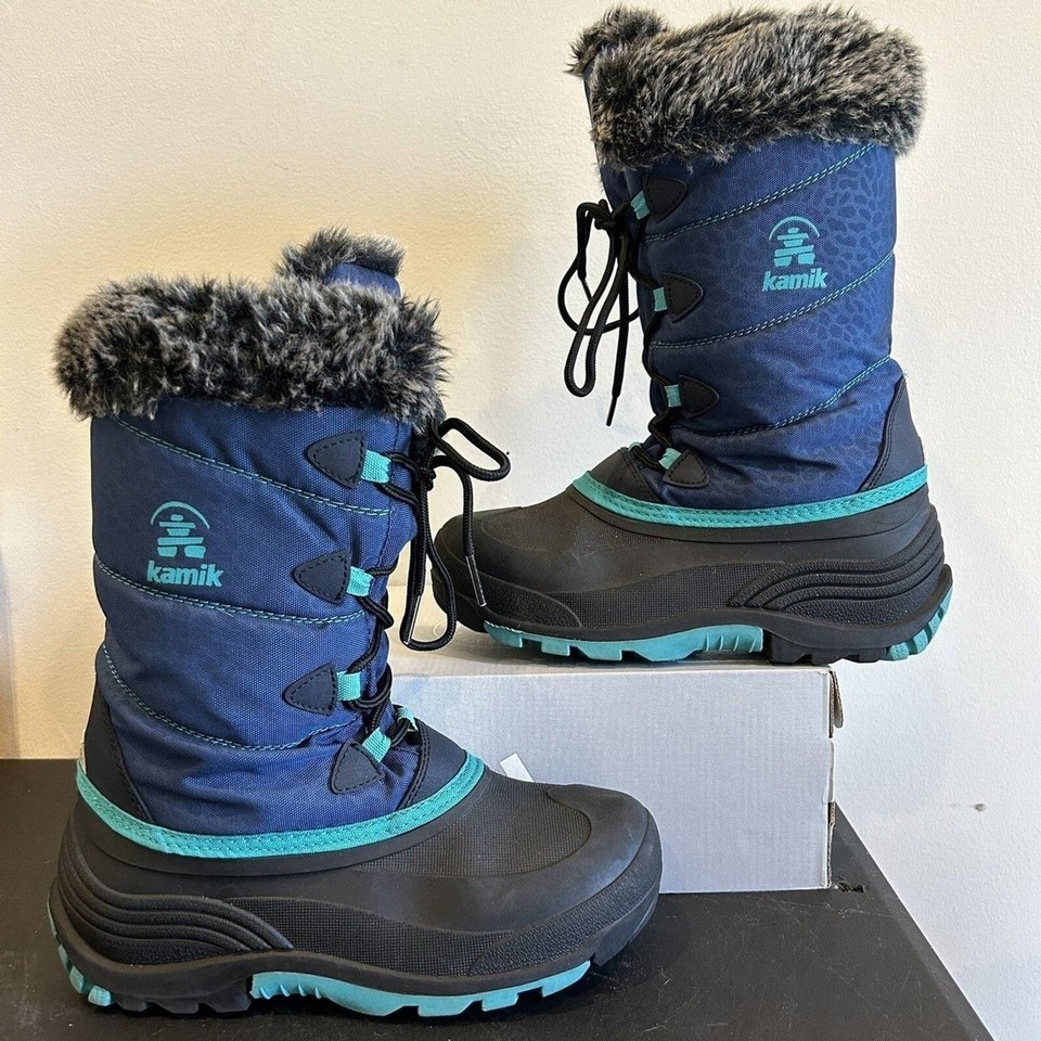 * Kamik Waterproof Snow Boots * Size 6 Big Kid / converts to size 7.5/8 for women * Navy blue with teal accents * Purchased for $79.99 * See photos for more info - gently worn only a handful of times and in great condition * Any questions, please ask! Item will ship via USPS Ground Advantage unless buyer would prefer to expedite for an additional cost Thank you!