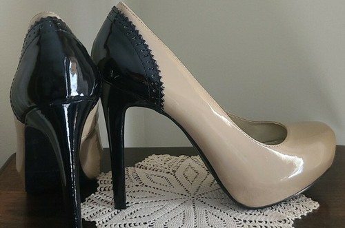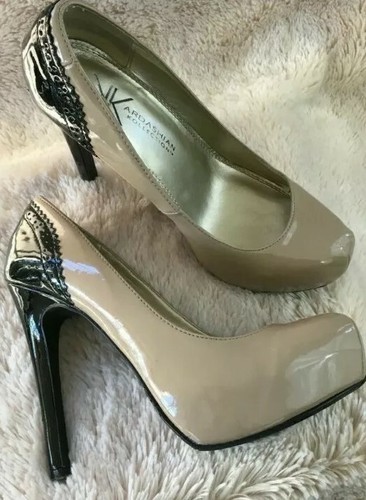This sale is for One (1) Pair of Kardashian Kollection Platform Shoes Women's Size 10 M Nude in color with back side (heel area) heel itself are black in color Rubber soles Slip on shoes Snip toe Padded footbed 5.25" Hi-Heel ~ 1" Platform Sturdy platform design Faux patent leather ~ Man made material Shoes are new ~ never worn Please view photos for a good description of these shoes Thank you!