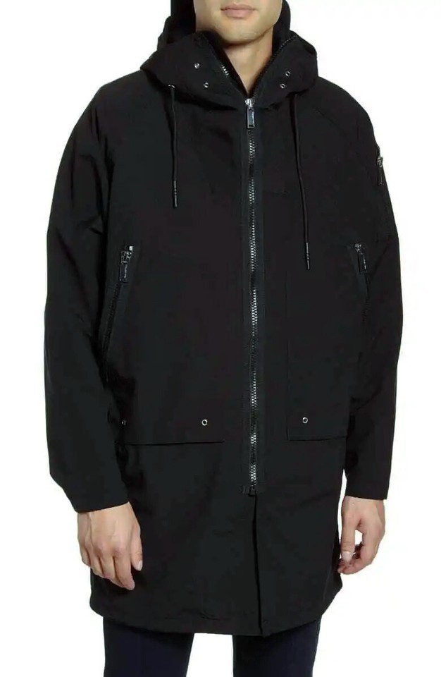 Karl Lagerfeld Men's Black Oversized Hooded Mod Zip Jacket Coat XL TG
