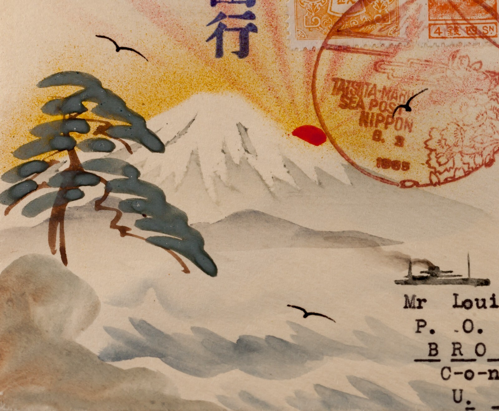 - Karl Lewis 1935 Hand-Painted Watercolor Cover Japan to CT, USA Tatsuta Maru C-1