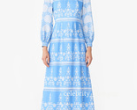 Kate Middleton Inspired Baby-blue Boho Blouson-sleeved Cornflower Maxi Dress OZ