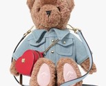 Kate Spade Denim Katey Bear Crossbody Bag, Plush Teddy Bear Bag with Heart Coin Pouch