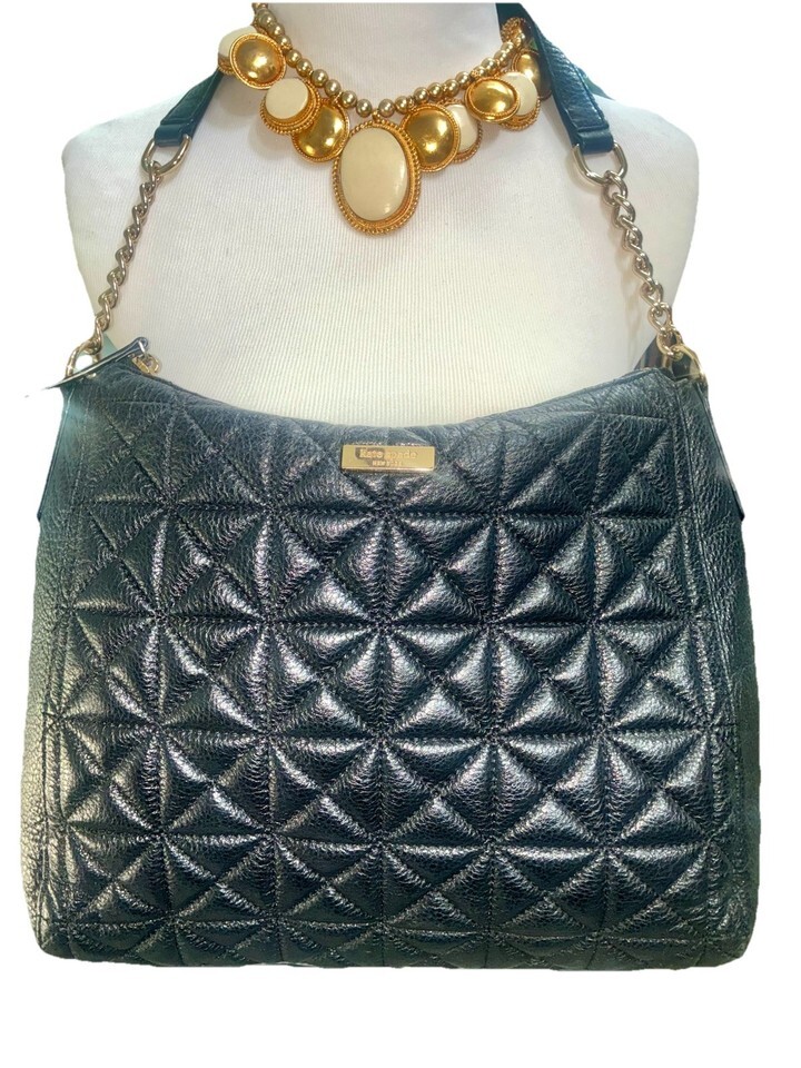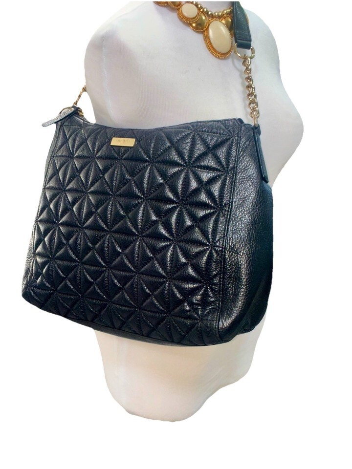 - Kate Spade NY Black Diamond Quilted Cowhide Leather Shoulder Bag Gold Chain EUC