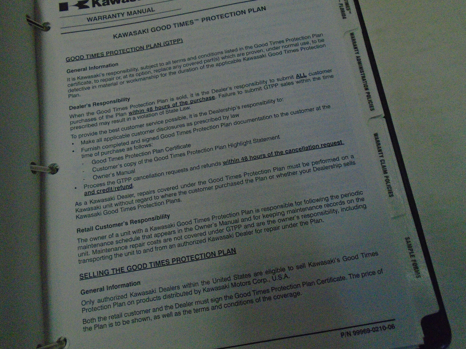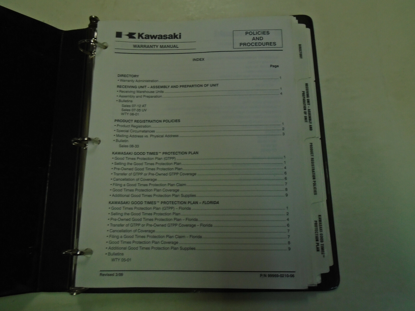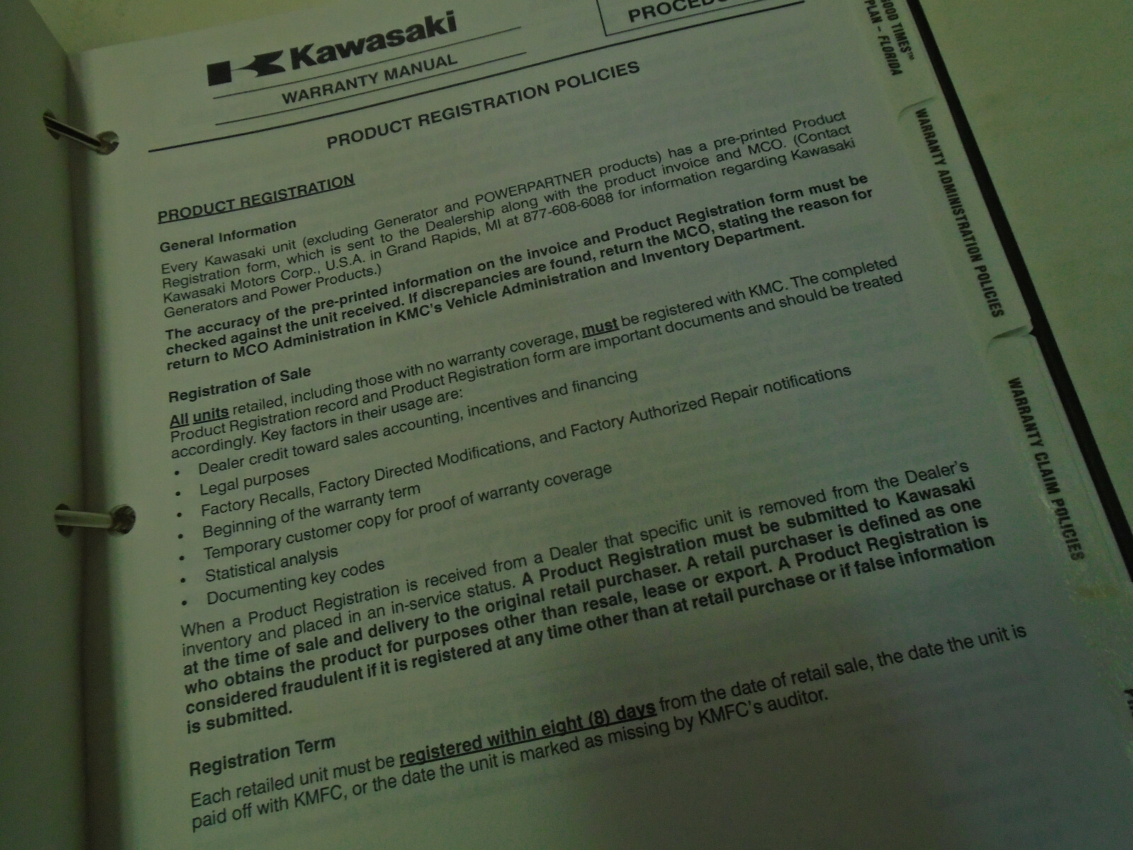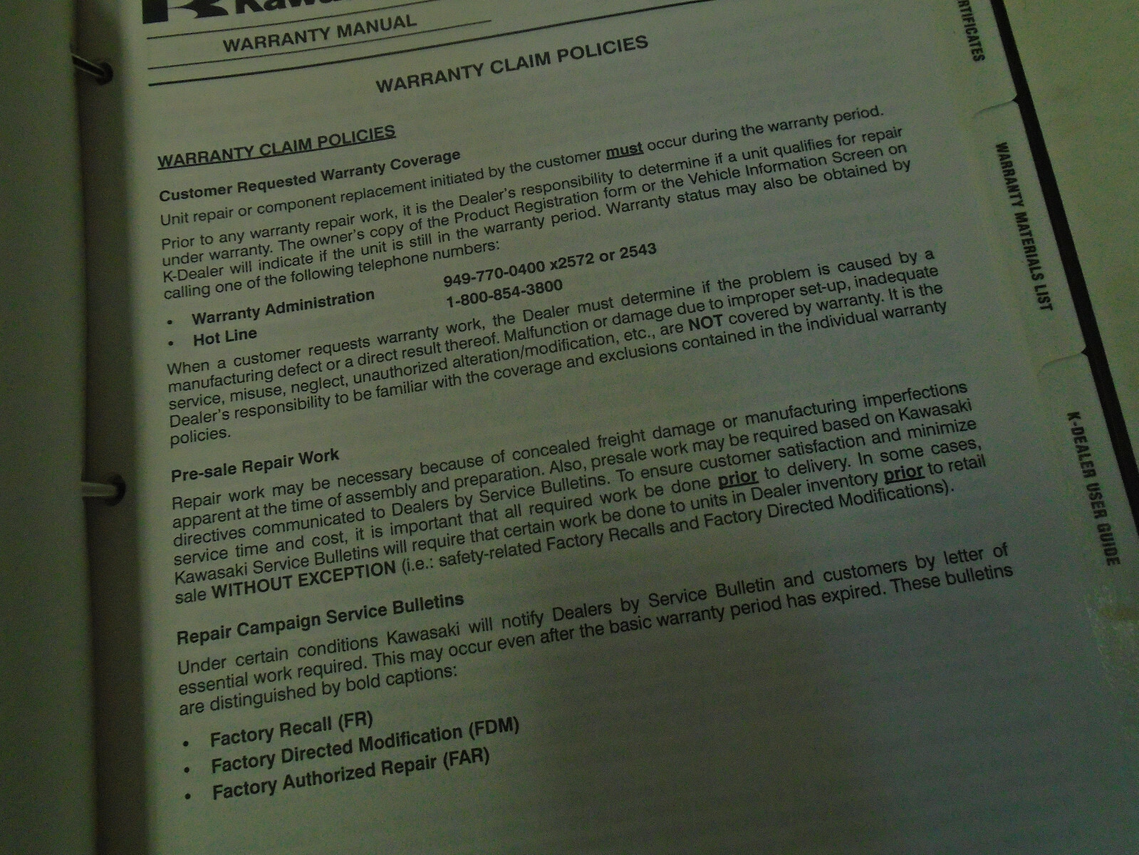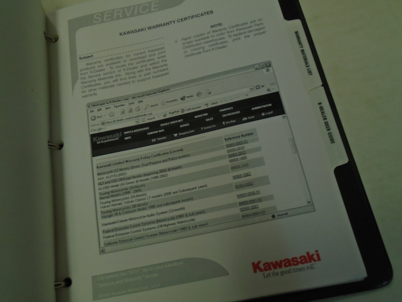 Kawasaki Garanzia Condizioni Procedure Manuale Fabbrica Libro OEM Libro Usato