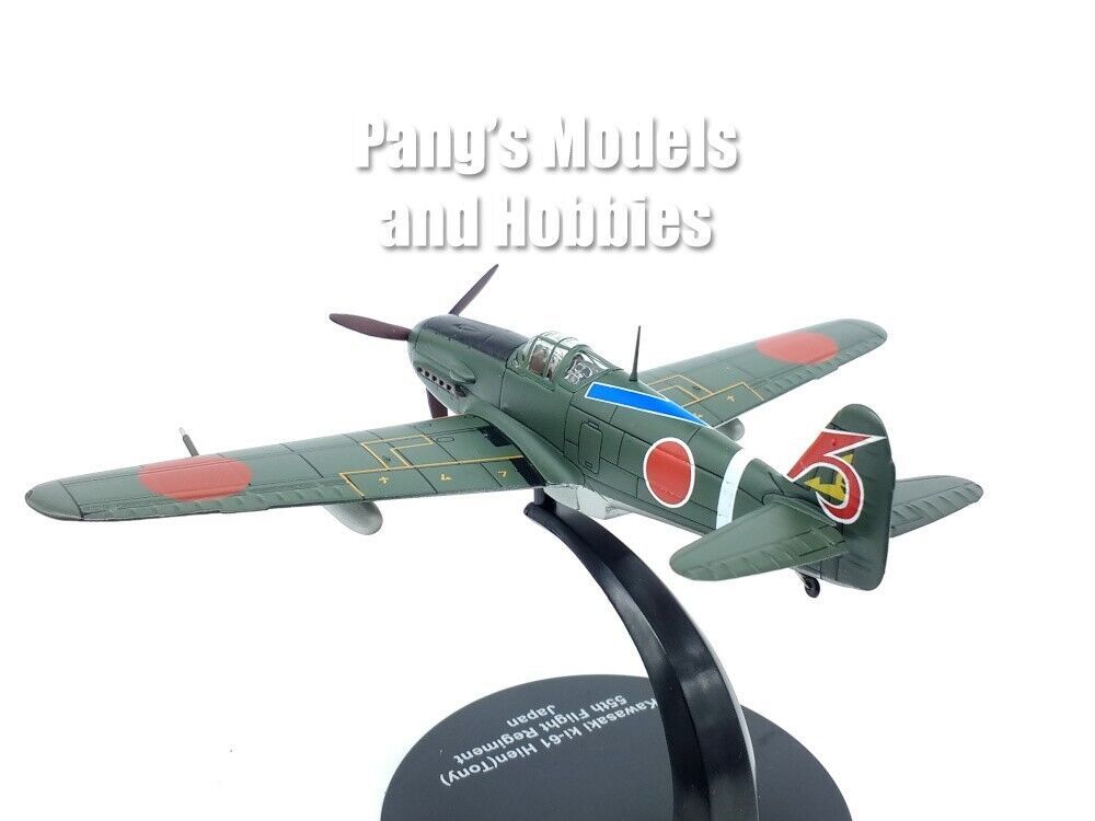 1:72 Scale Diecast Metal - Kawasaki Ki-61 Hien - Tony 55th Flight Regiment Imperial Japanese Army Air Service - IJAAS ? Length: 5" Wingspan: 6.5? This model is a single seat airplane. The cockpit is glue shut. It has no pilot figure included. The landing gear is optional and can be attached or omitted to display the model in in-flight configuration. A display stand is included. This is not a toy. Recommended for 15 and older. The Kawasaki Ki-61 Hien (??, "flying swallow") is a Japanese World War II fighter aircraft used by the Imperial Japanese Army Air Force. The first encounter reports claimed Ki-61s were Messerschmitt Bf 109s: further reports claimed that the new aircraft was an Italian design, which led to the Allied reporting name of "Tony", assigned by the United States War Department. The Japanese Army designation was "Army Type 3 Fighter" (?????). It was the only mass-produced Japanese fighter of the war to use a liquid-cooled inline V engine. Over 3,000 Ki-61s were produced. Initial prototypes saw action over Yokohama during the Halsey-Doolittle Raid on 18. April 1942, and continued to fly combat missions throughout the war.