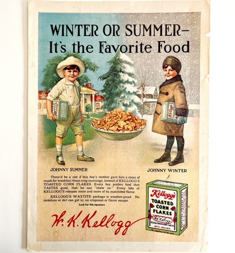 Kelloggs Toasted Corn Flakes 1915 Advertisement Johnny Summer Lithograph HM1H