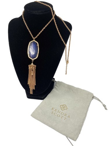 Kendra Scott Rayne Necklace Excellent condition Rose Gold Plated with Blue, glittery stone pendant 32 in Length is adjustable Lobster Closure Includes original storage bag See all photos. Non-smoking home. Check out my other items. I am happy to combine shipping and only charge actual shipping charges! My goal is always 100% complete customer satisfaction. If you feel your item has arrived "not as described", please contact me to arrange for return/refund before leaving feedback I am a trading assistant. I can sell your items for you! |MLM-IH|