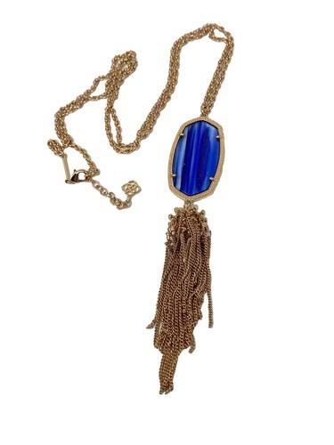 Kendra Scott Rayne Blue Stone Pendant Tassel Necklace