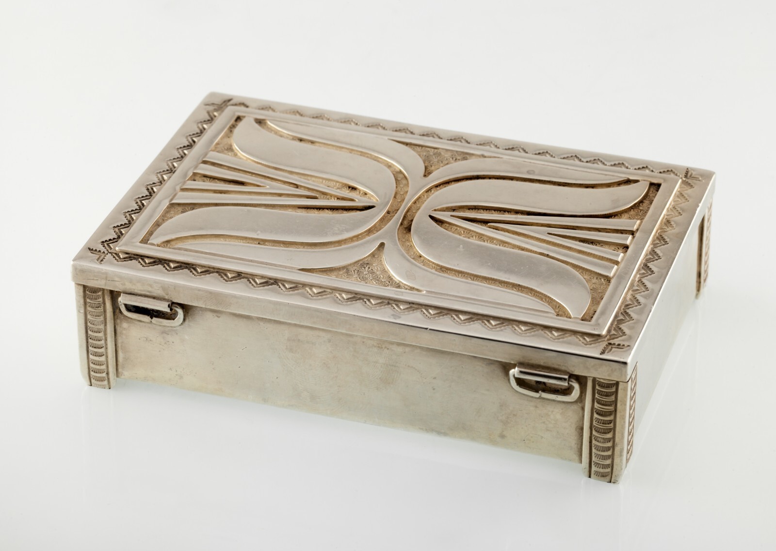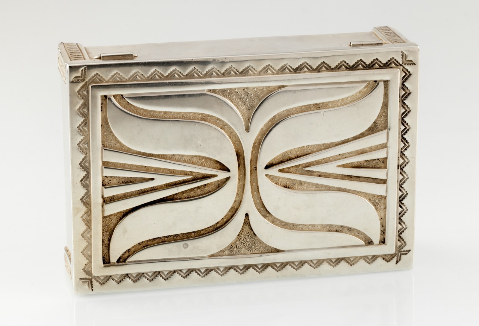 - Kenneth Begay Unterzeichnet Navajo Sterlingsilber Zigarette Box Weiß Hogan Retro