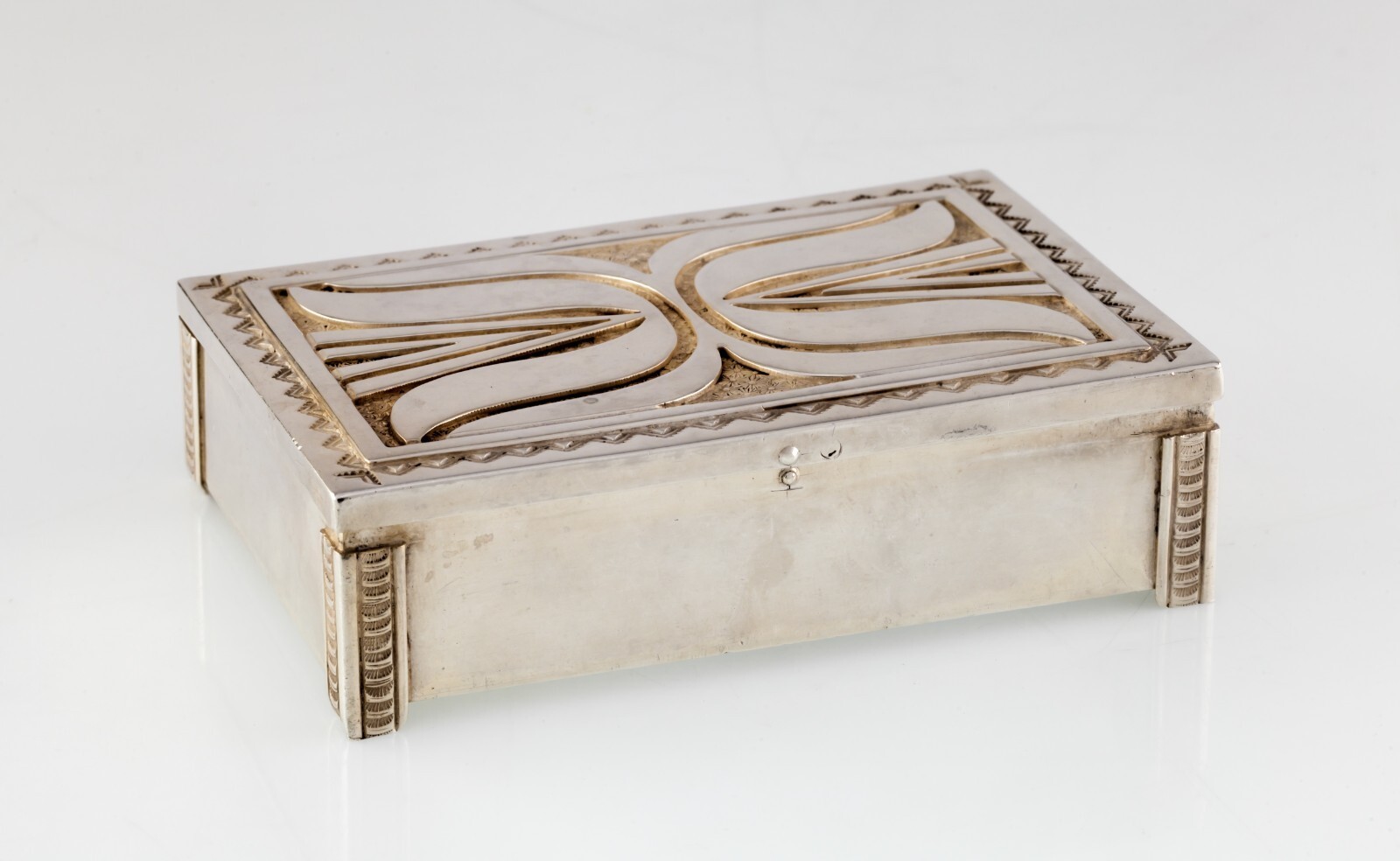 Kenneth Begay signiert Navajo Sterling Silver Cigarette Box White Hogan Vintage
