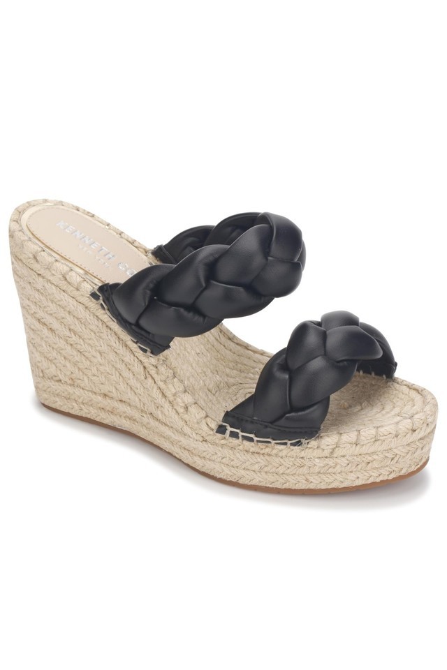 - Kenneth Cole New York Olivia Braid Wedge Sandal Black Size 6
