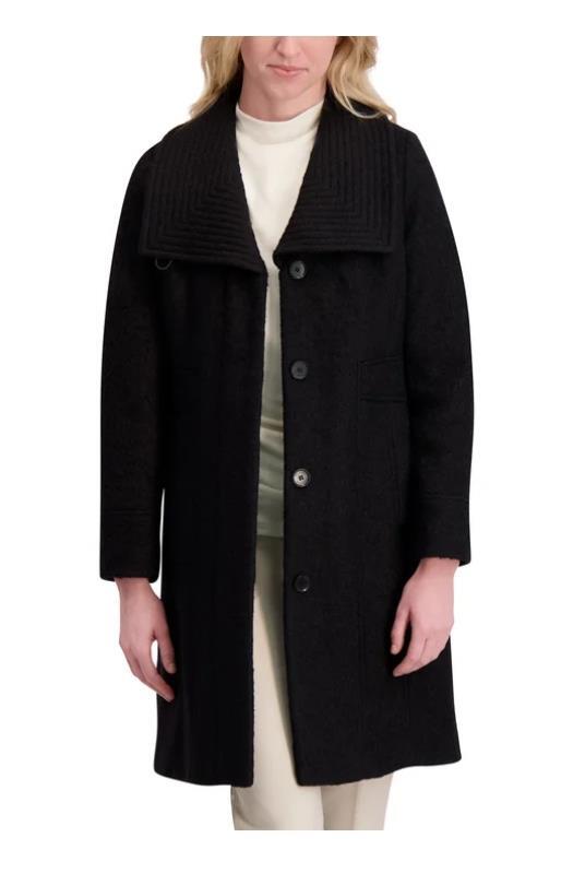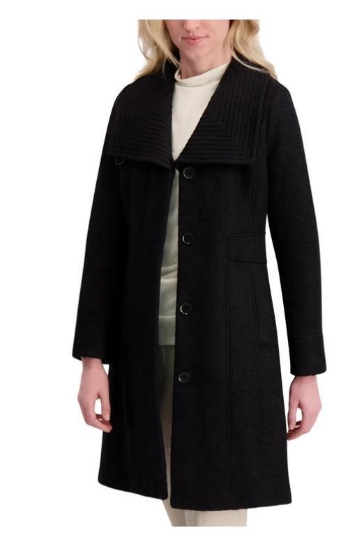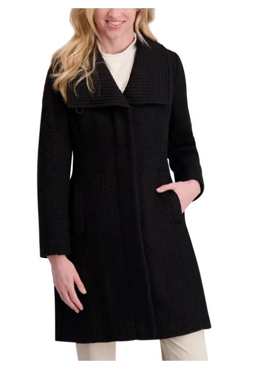 - Kenneth Cole Womens Overcoat Black Lined Pockets Covered Placket Heavyweight