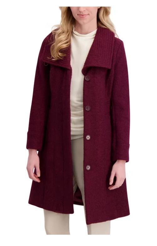 - Kenneth Cole Womens Overcoat Dark Red Lined Pockets Covered Placket Heavyweight