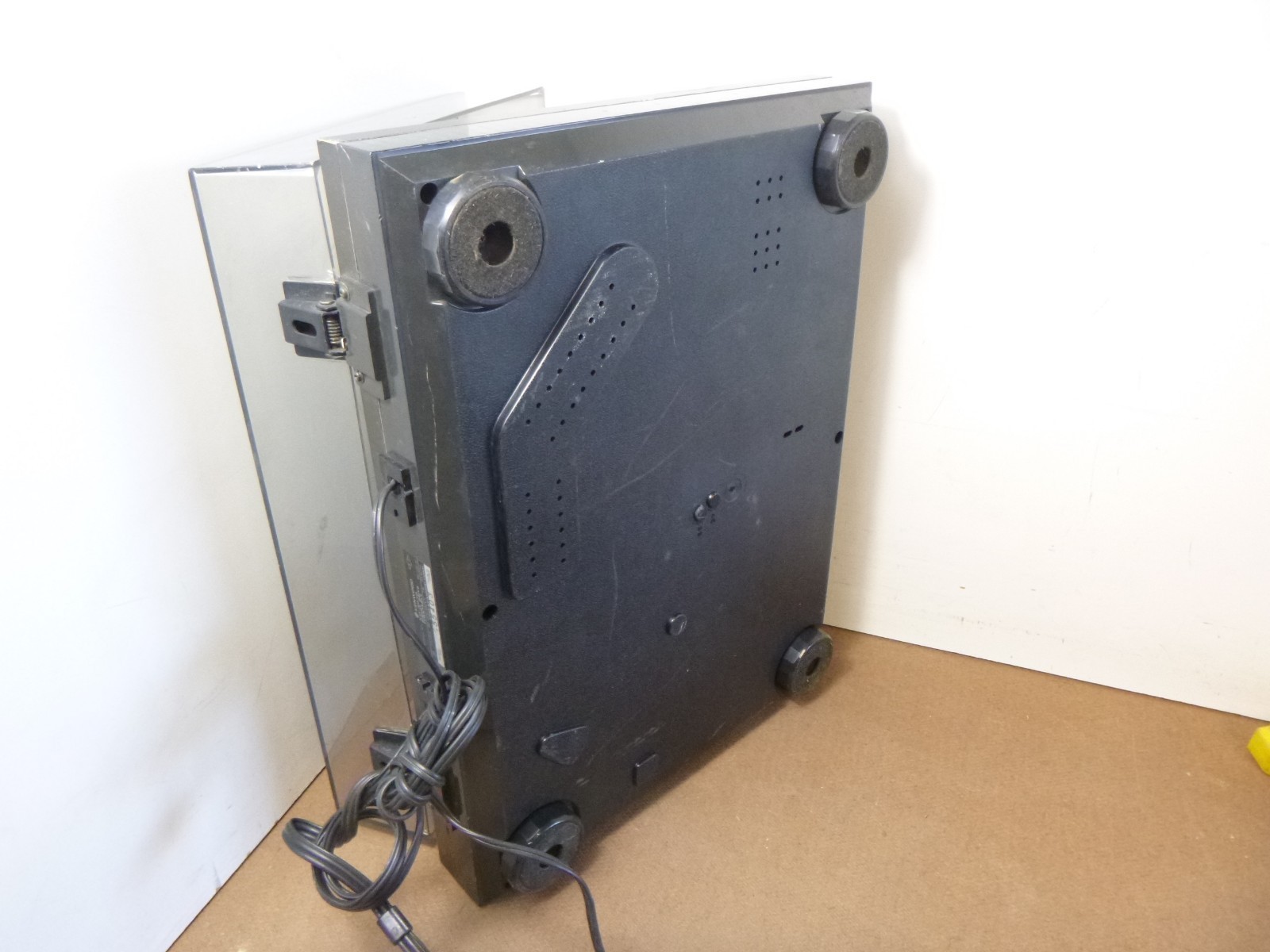 This turntable does not have a cartridge head and so I am not able to test it, but it does power on, and the table turns (see video).