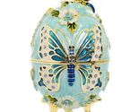 Keren Kopal Turquoise Butterfly Music Egg trinket box with Austrian crystals